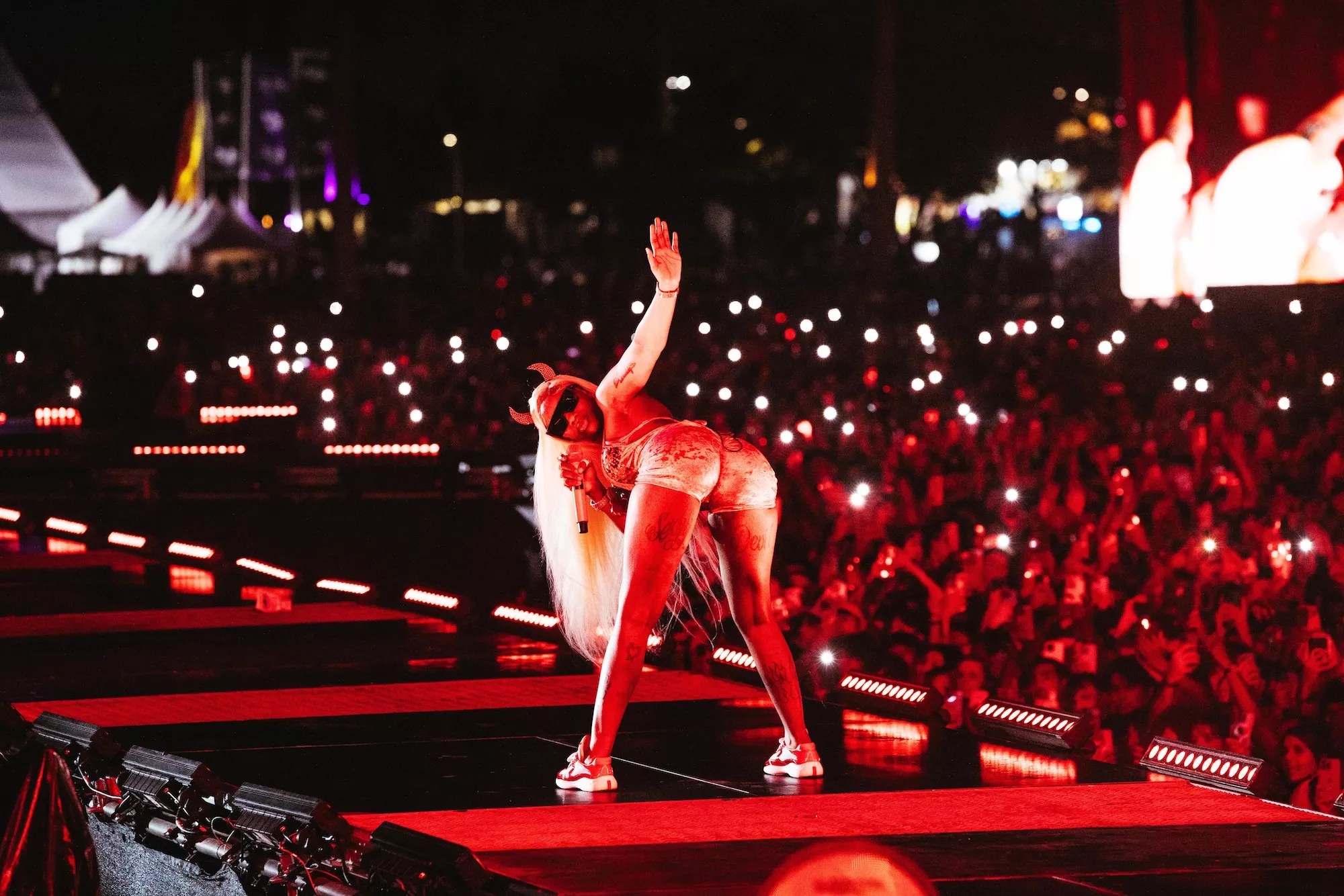 Much like my show review this past summer, Ski Mask the Slump God turned the Hard Rock Stadium grounds into a massive rager. However, unlike the Fillmore Miami Beach, there were no walls to contain the madness he unleashed onto a crowd as he played his classics like “RIP Roach” and “Achoo.” Reminiscent of his past shows, he celebrated Juice Wrld and XXXTentacion by performing “Legends” and “Jocelyn Flores.” And once again, Ski brought out Danny Towers to play songs “How You Feel?” and “Florida Water,” a reminder of when all South Florida rappers would hang out and perform together at earlier editions of Rolling Loud. Ultimately, the festival’s main stage felt like it was made for Ski as he took command while looking very comfortable. Sexyy Red brought her signature rachet aesthetic to the stage at Rolling Loud 2024. Photo by Josh Sobel for Rolling Loud