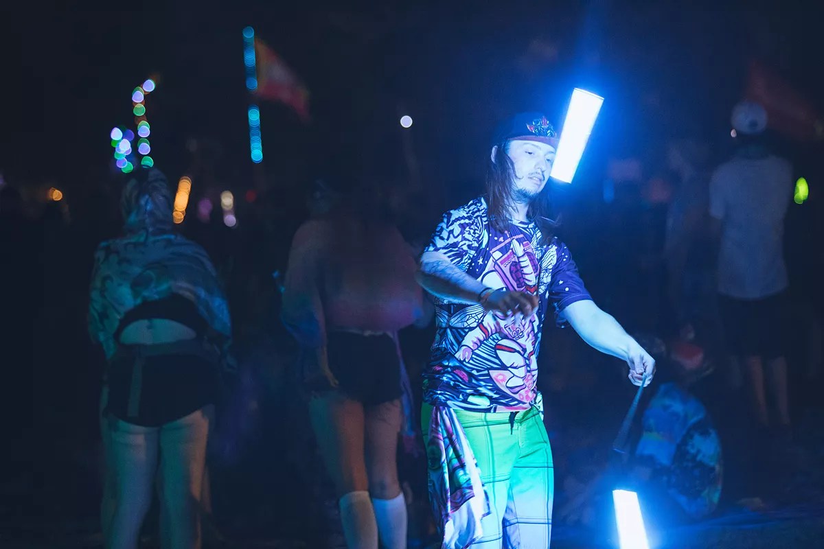 Sunshine Grove abounds with natural beauty, but OMF doesn’t get truly visually arresting until darkness falls and all the neon-colored lights glow. Definitely save up some energy and hang out at the Jungle 51 stage before going to bed: It’s like stumbling upon a weird pagan ritual where the witches have morphed into DJs.