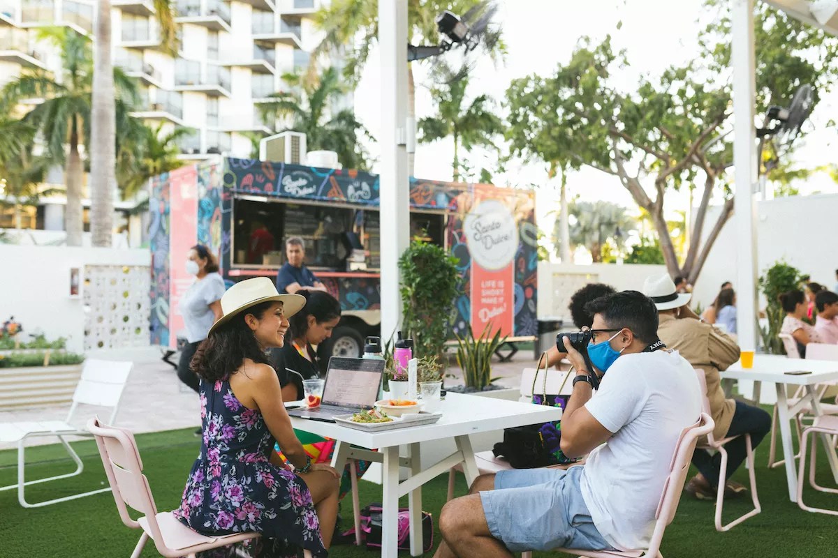 “After about eight months of looking at leases and talking to landlords, I realized that a brick-and-mortar concept was very risky,” she goes on. “I met a lot of entrepreneurs who were creative and wanted to launch businesses but who were also facing the same problems I was: that they didn’t have any space. At that time, Miami didn’t have any food halls or culinary incubators. I decided to just start one, the Wynwood Yard, which was like the scrappiest business of all time, built on vacant lots with food trucks, shipping containers. It was a total mess, but luckily the community welcomed us with open arms.”