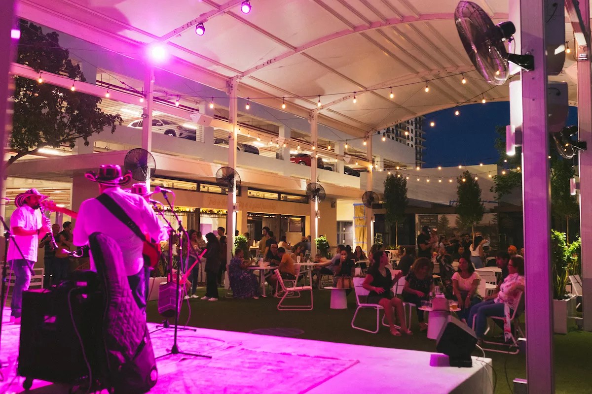 When the Doral Yard first opened last year, its live-music setup was underwhelming, especially when compared to the scope of its Wynwood iteration. A makeshift stage was set up on Main Street in front of an indoor bar and food hall. Music seemed to come second to the business’ culinary offerings. Patrons of the Yard didn’t pay much mind to the performers as they chatted and noshed right in front of them.