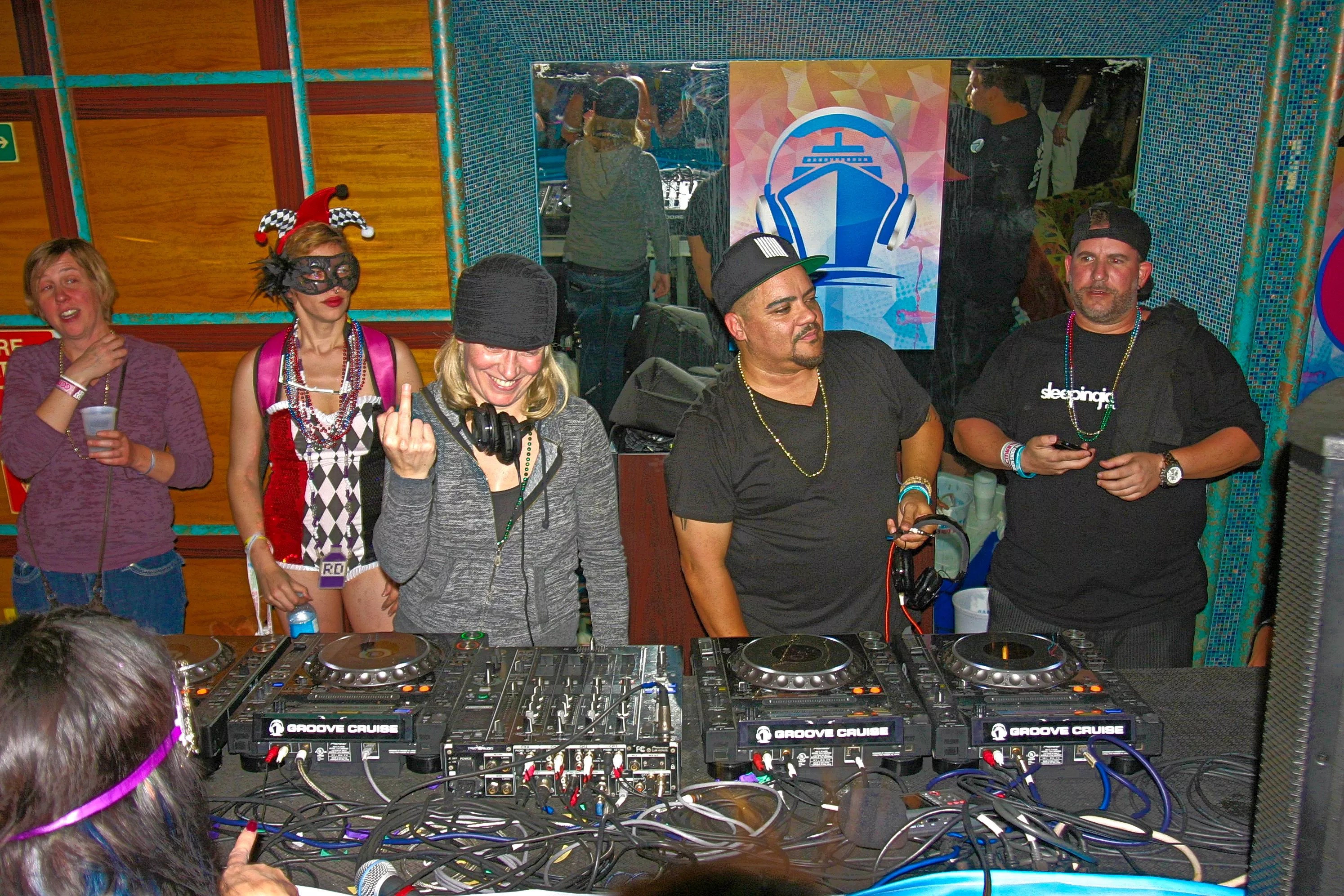 Shortly after boarding came the first DJ set. A small party quickly formed. Raul Diaz from Los Angeles brought lasers, a disco ball, turntables, a mixer, and speakers. He played 138 BPM trance as if it were early morning. It was 5 p.m., and the ship hadn’t left port.