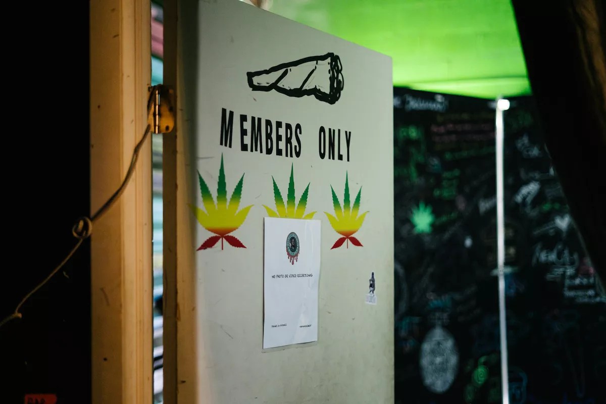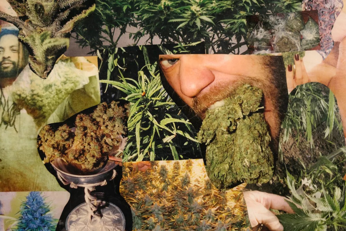 A weed-heavy photo collage decorates the Joint of Miami’s walls.
