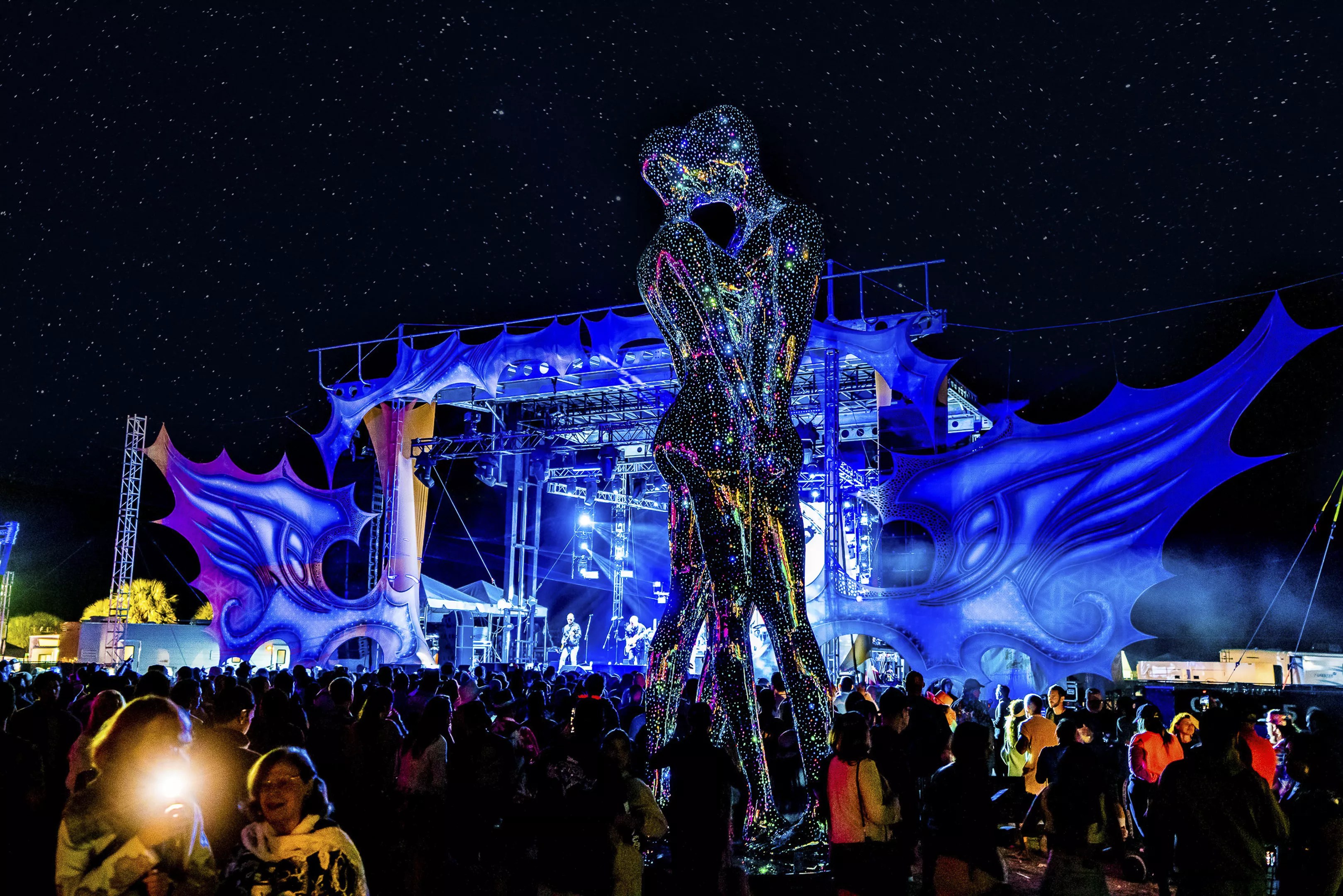 Then there’s the art. The festival promises plenty of incredible interactions with immersive artworks, large-scale installations, an NFT gallery, live muralists, and even art classes. Last year pulled in legendary local figures like Mira Lehr. This year, works on display will include Adelita, Chris Carnabuci’s massive sculpture of a female figure breaking free of chains that premiered this year at Burning Man. Berlin-based Argentinian artist Marina Zumi will present a nighttime light installation. Other participants include Daniel Jonathan Popper and Miami’s own Moksha Arts Collective. Caines sees Art With Me as an opportunity to promote artists who might not get a look-in at Art Basel or its satellite fairs.