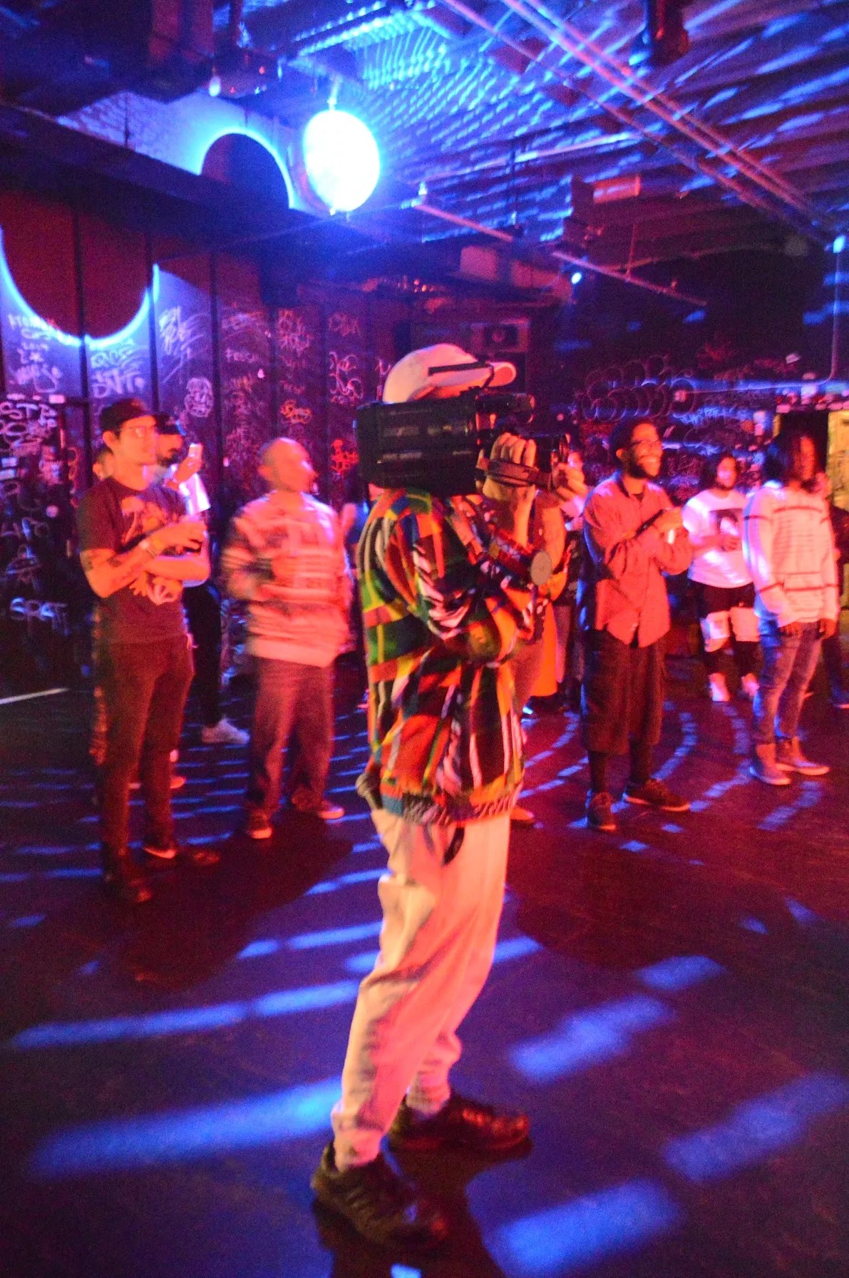 Ashiyushi, aka Joshua Hicks, films a performance at Bento Box with a VHS camcorder.