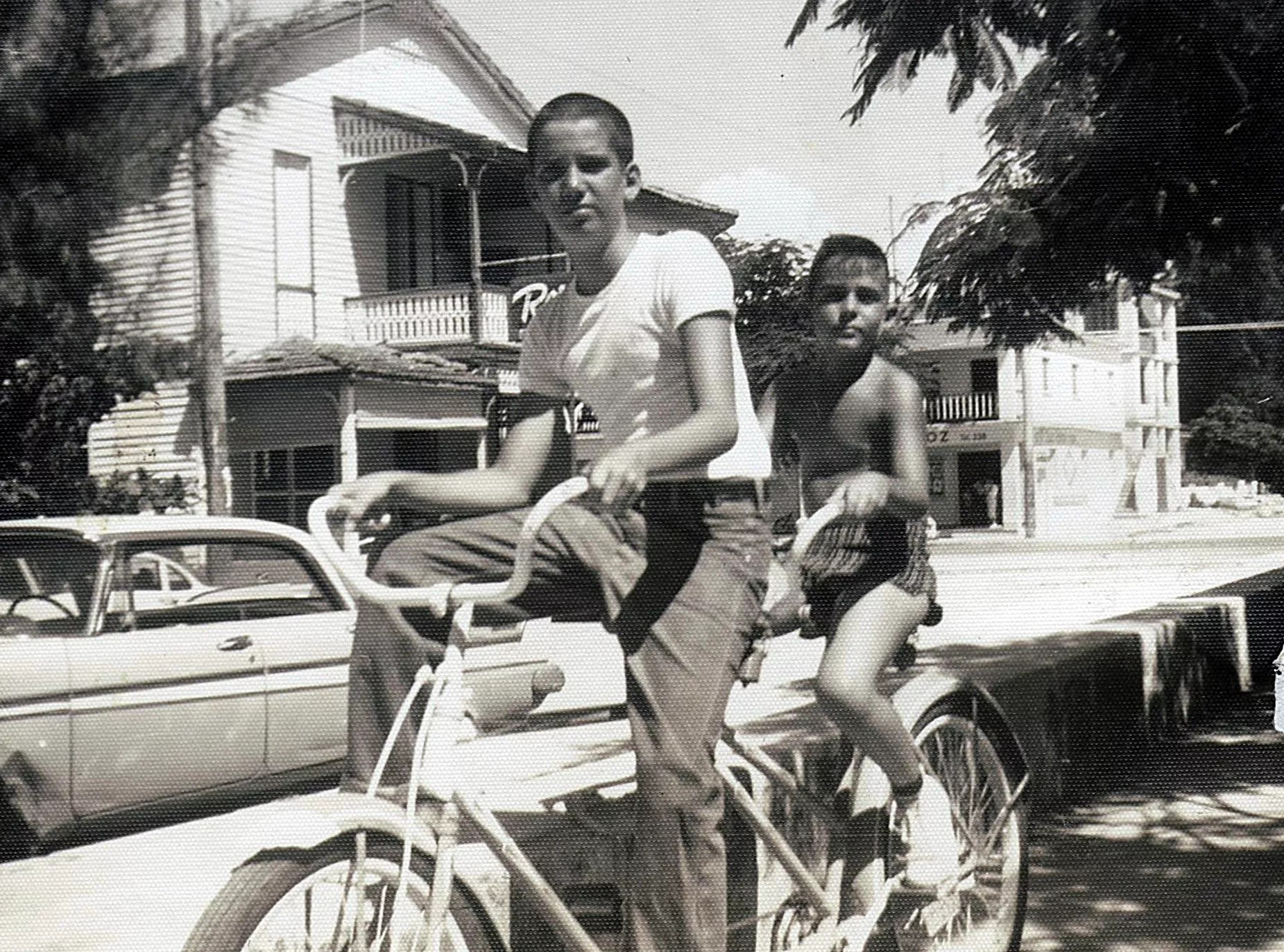 Willy Chirino (front) on a bike in Consolación del Sur, Cuba, in 1957.