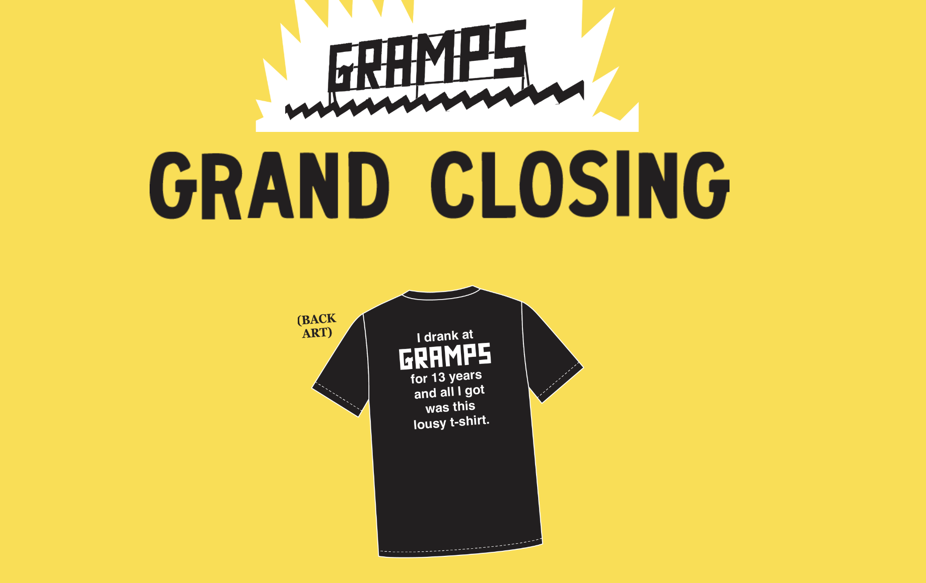 And if you want to keep a piece of Gramps with you after the closing, t-shirts are available on their website.