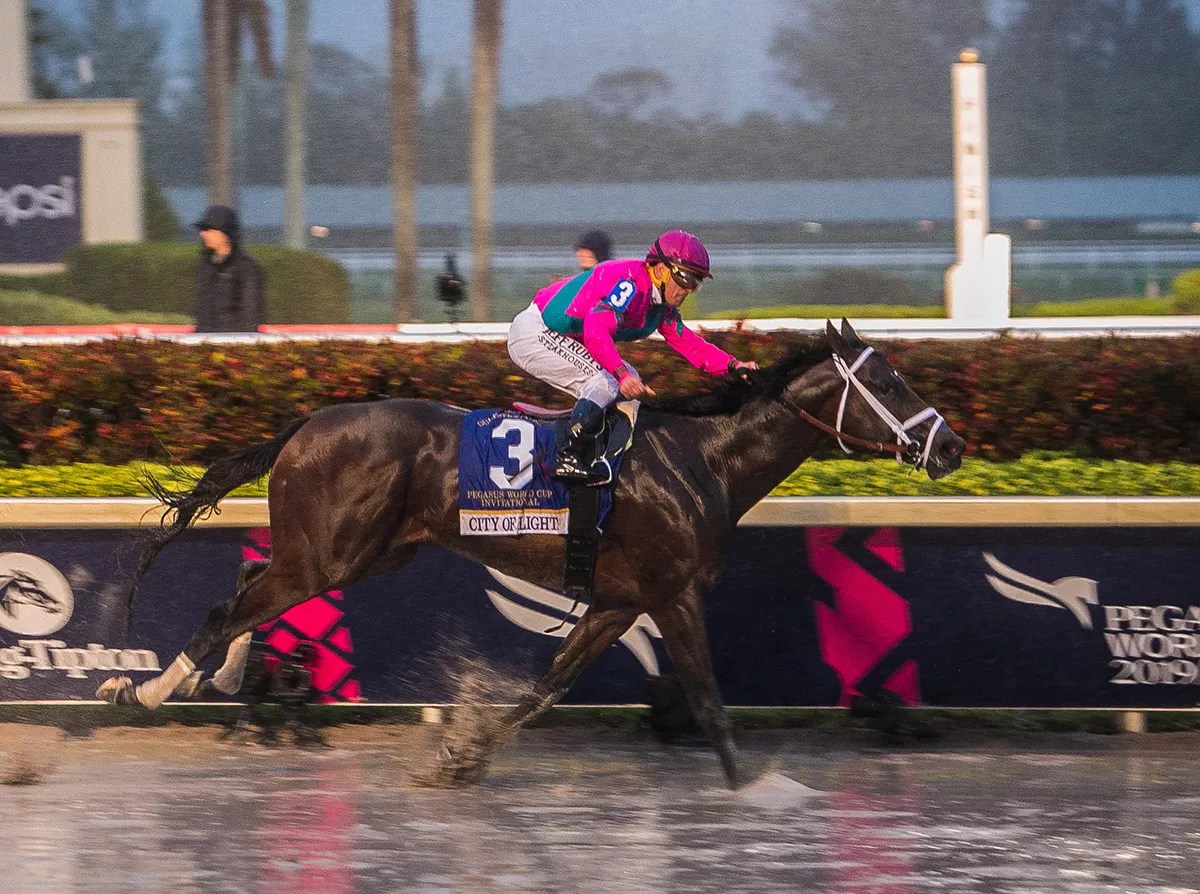 City of Light en route to victory in the 2019 Pegasus World Cup dirt race.