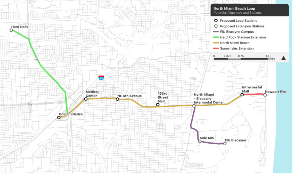 Plans submitted by the Boring Company show the North Miami Beach public transit tunnel extending west to Hard Rock Stadium, with a route branching off to Florida International University’s Biscayne Bay campus.