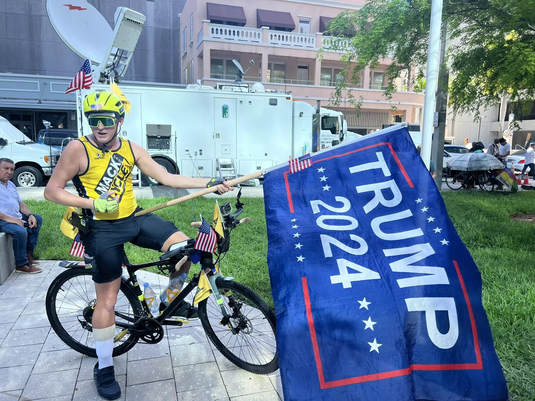 Evidently, this gentleman posted up outside the Wilkie D. Ferguson Jr. U.S. Courthouse in downtown Miami wants to see Trump in horizontal stripes.