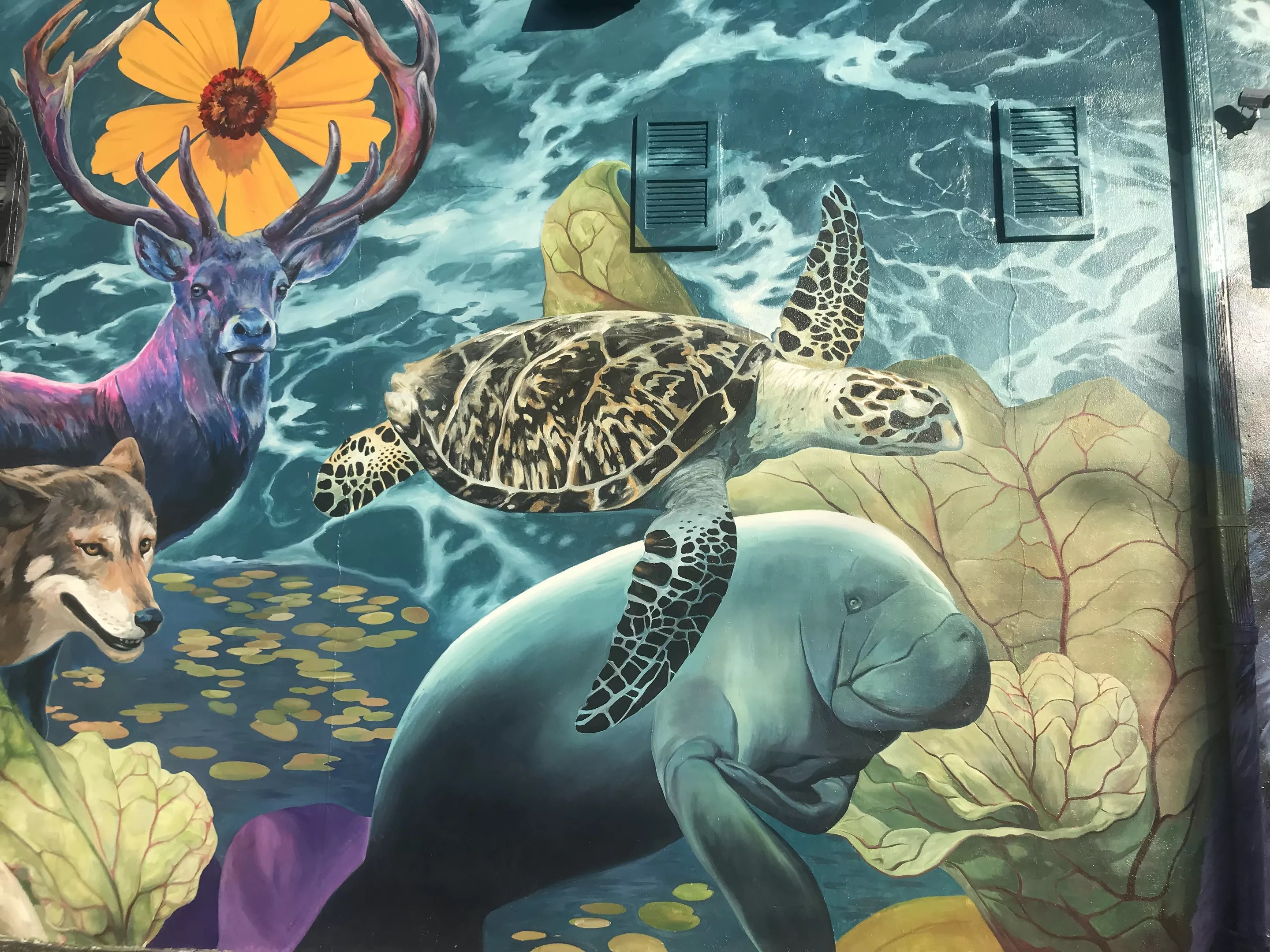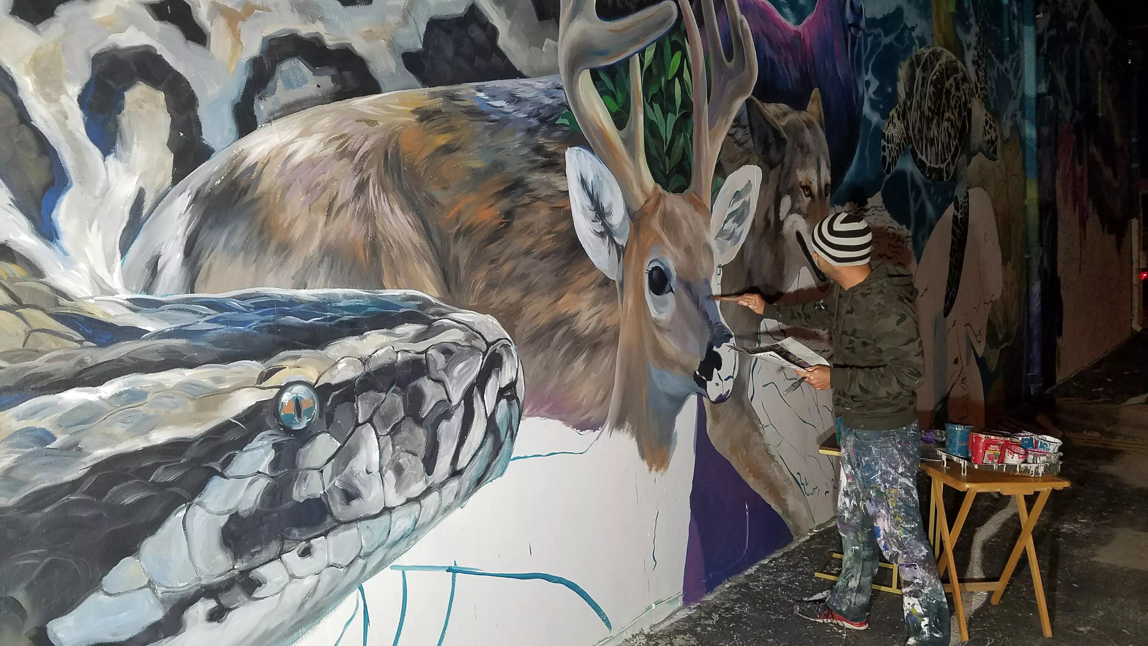 Some may question why invasive species like the Burmese python and lionfish are included in the mural. But that’s exactly the point.