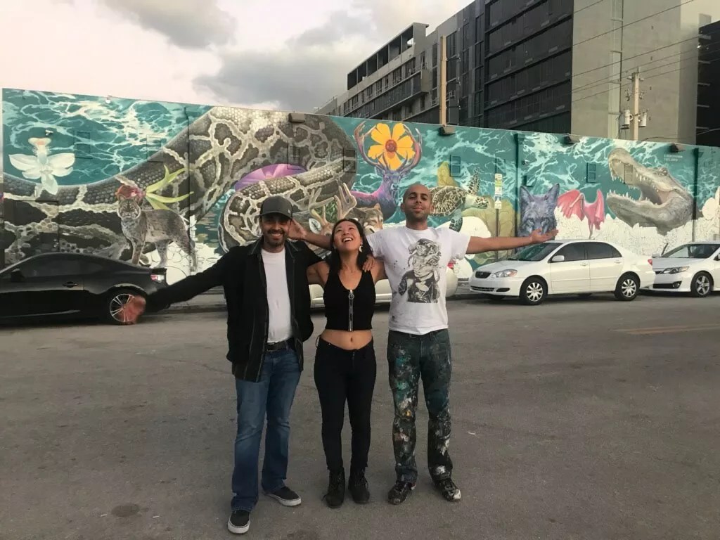 Juan Carlos Gallo, AR designer Linda Cheung, and Reinier Gamboa in front of the mural as it was still being painted