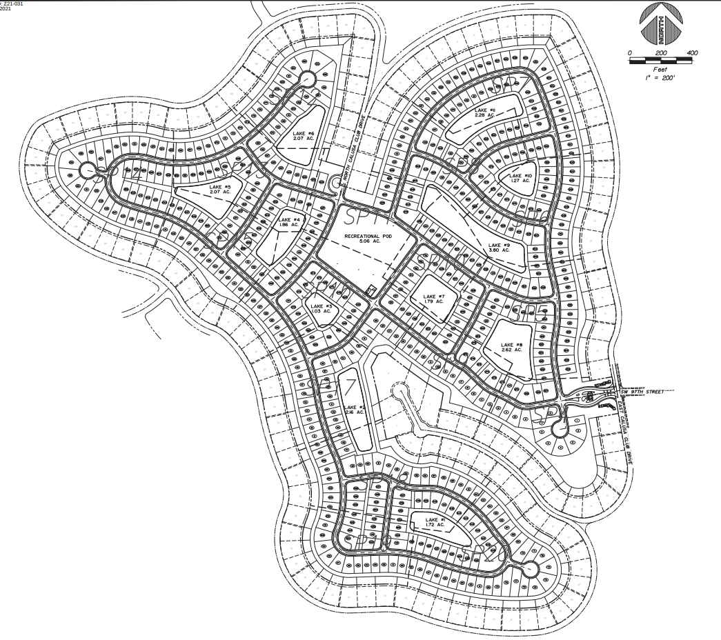 Current site plans for a rezoned Calusa golf course near West Kendall, which includes 550 single-family homes and two entrances.
