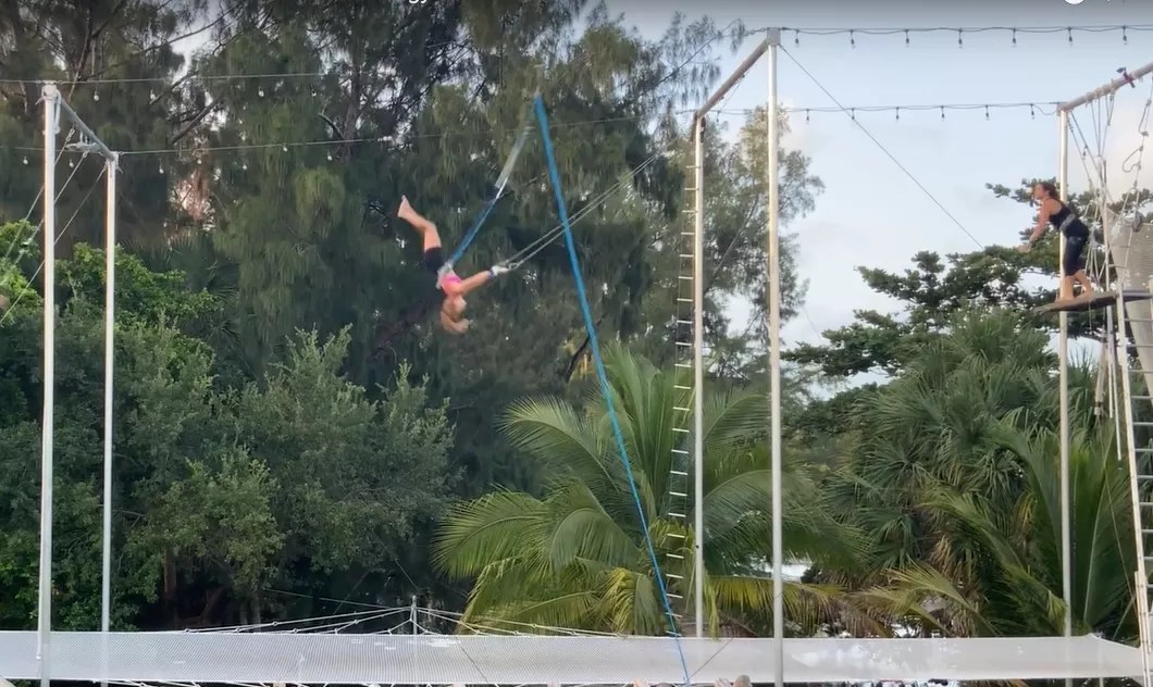 Trapeze artists fly high in Miguel Quintero’s backyard.