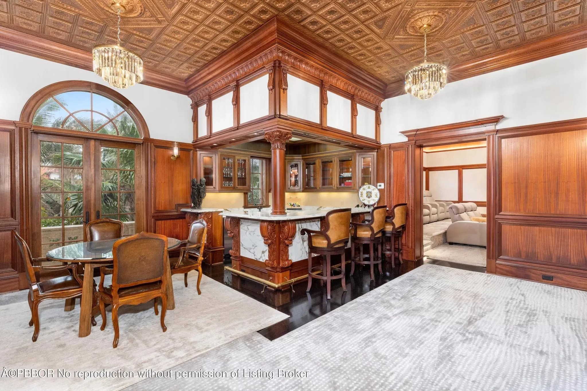 A custom-built bar in the entertainment space