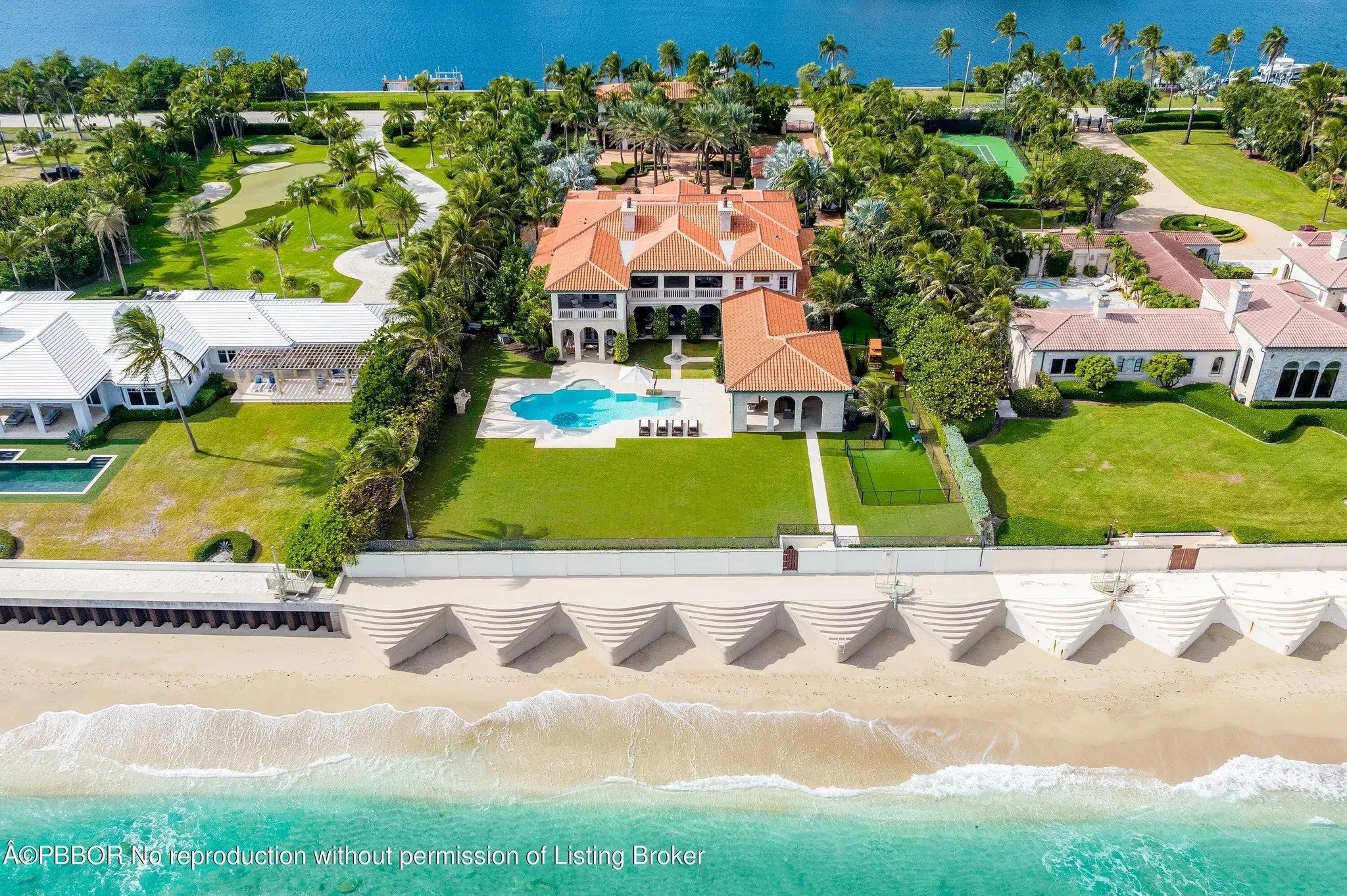 The property is situated between the Intracoastal Waterway and the Atlantic.
