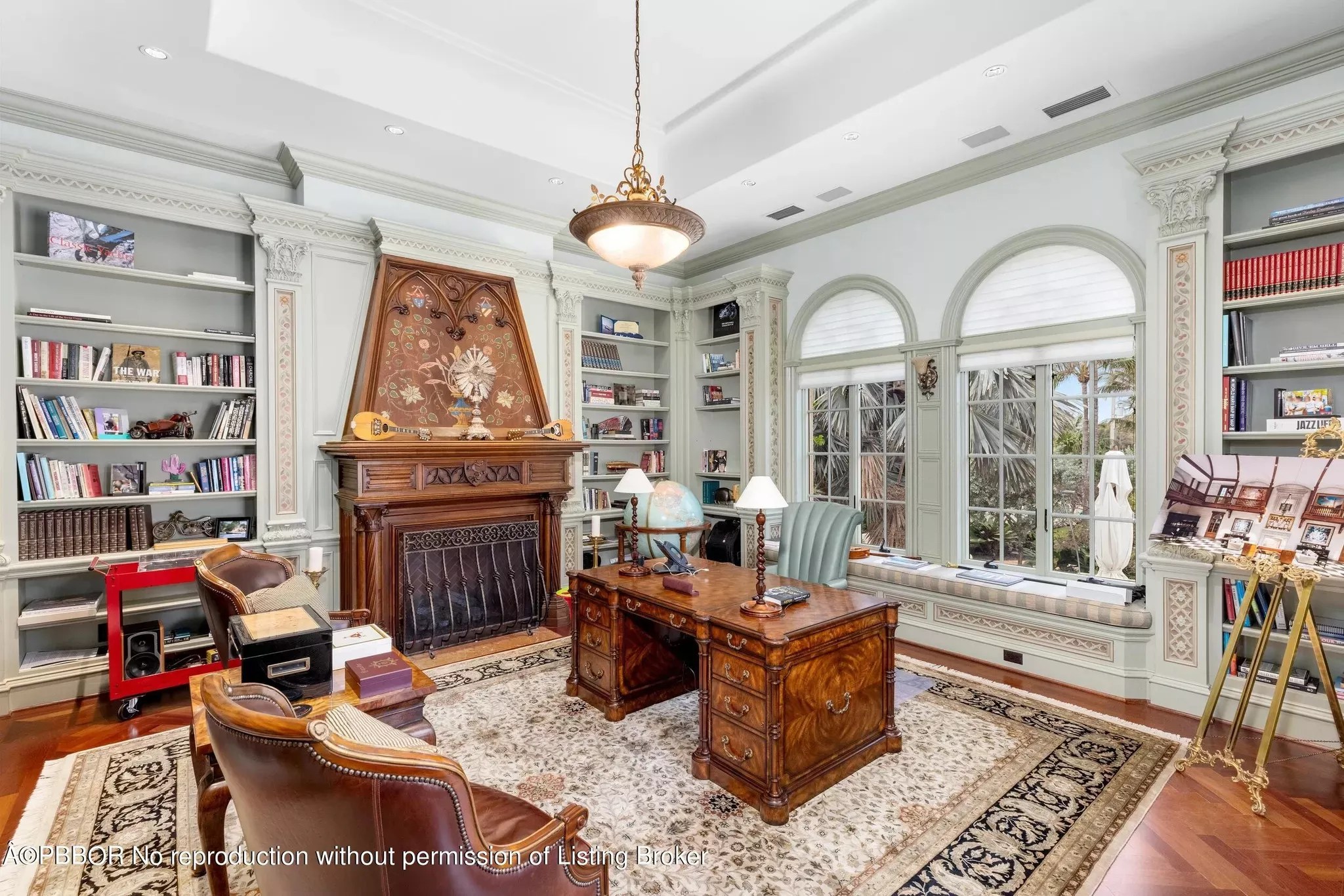 The home office has a fireplace, too.
