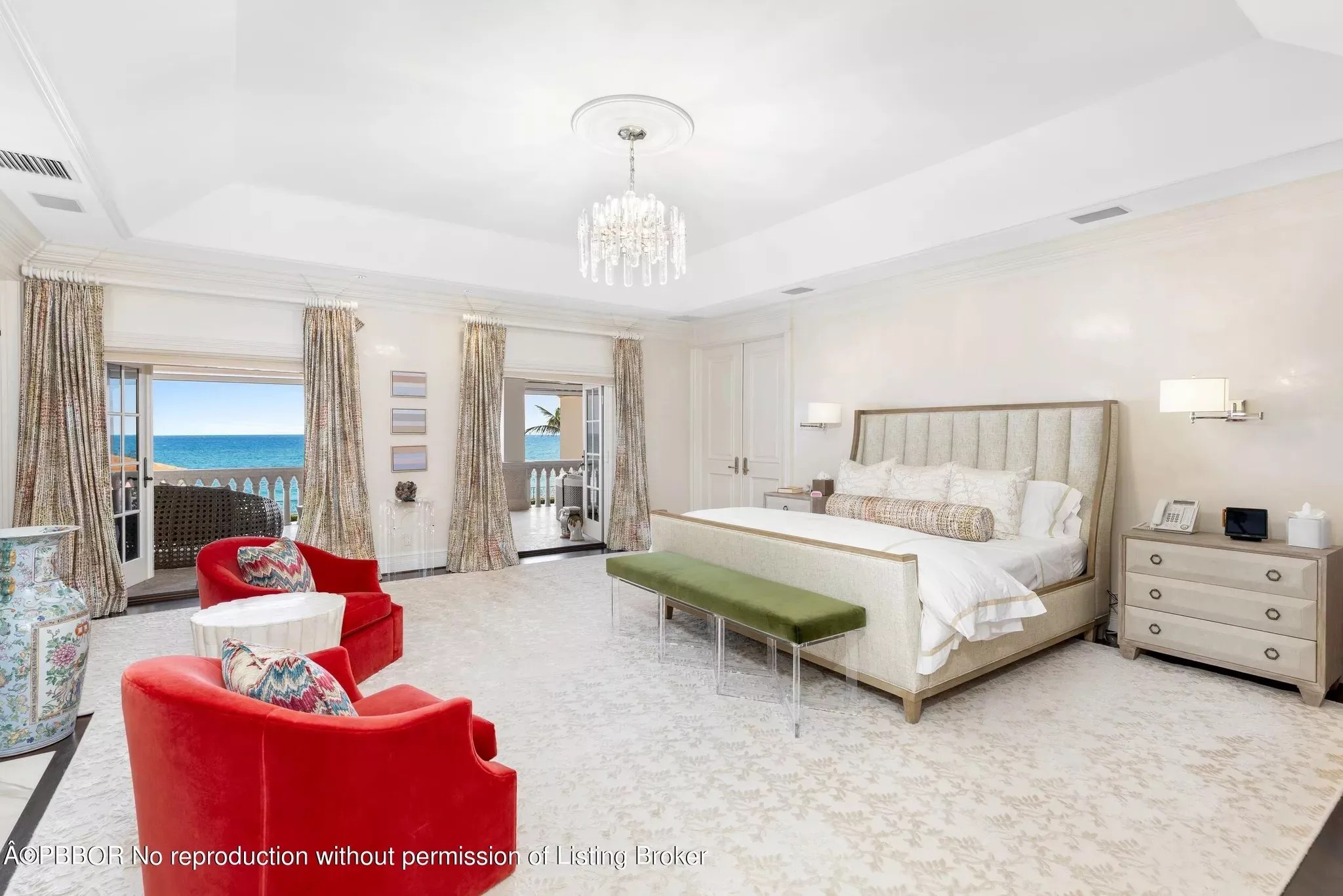 The spacious master bedroom offers ocean views and opens up to a private terrace.