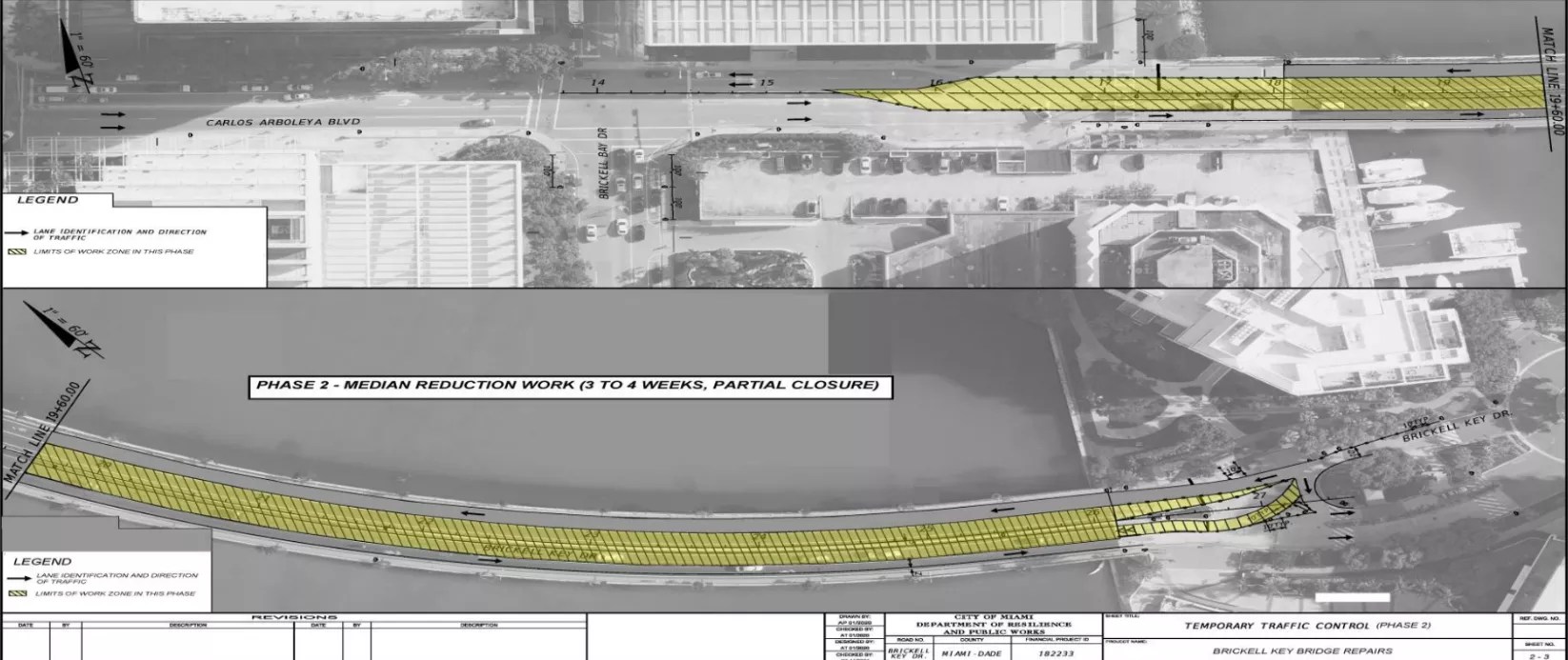 The island will see lane and sidewalk closures as the city repairs the Brickell Key bridge.