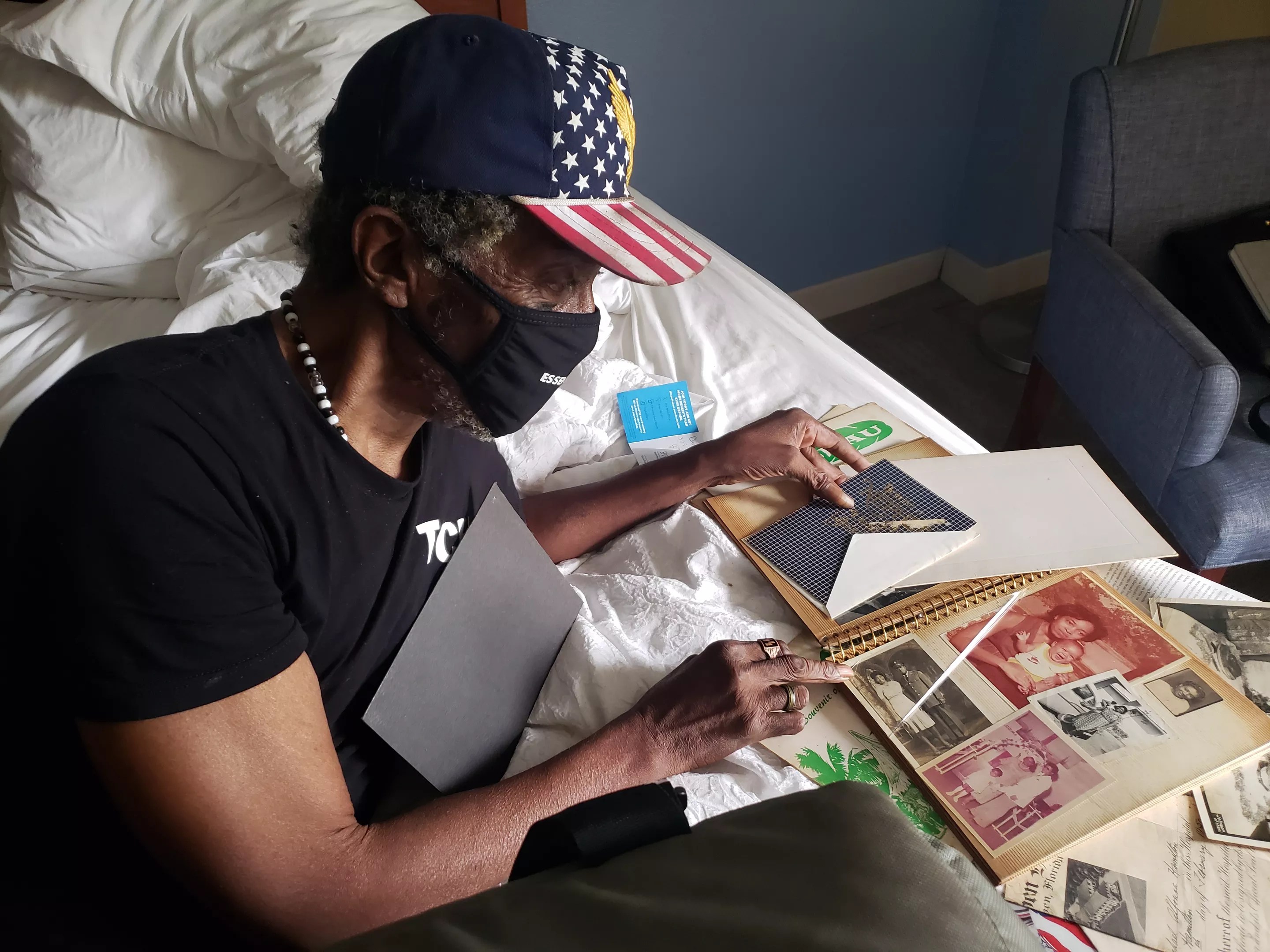 He gathered some clothes, documents, and photo albums. His birth certificate is folded and tucked inside a hardcover copy of The American Journey of Barack Obama. A black-and-white photo shows Hamilton, his mother Gussie, his father Malachi, and his brother Bernard posing during a large wedding celebration in their home. He flips through photos of smiling faces he can’t name and says he wishes he could have saved a framed photo of his dad in his U.S. Army uniform. Hamilton has cousins in Miami and Gainesville, but he’s the only living member of his immediate family. His brother and father died before his mother’s death in 2016.