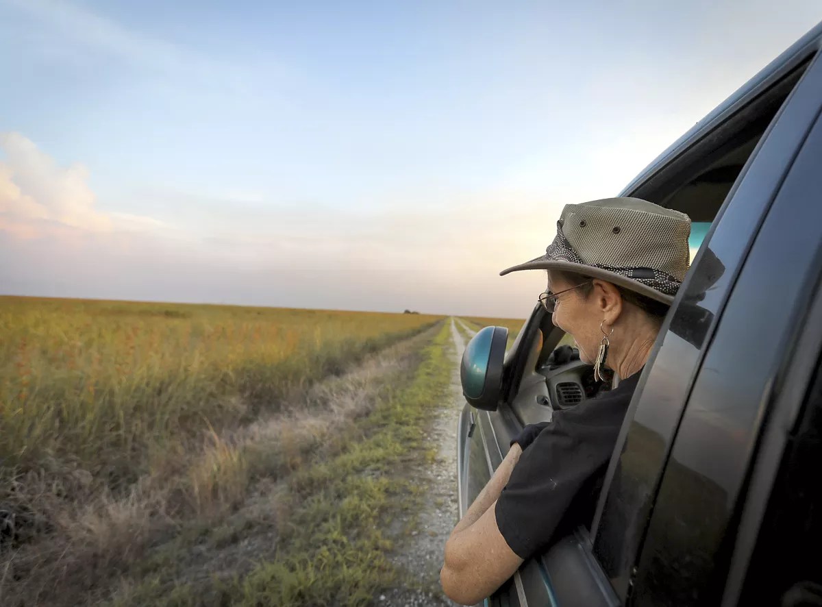 “She’s been out there all the time trying to prove herself,” her daughter says. “I feel like she kind of always has that in the back of her mind: Let me just prove to these guys I know what I’m doing too.” Kalil patrols the sawgrass for anything that moves. “Can’t catch ’em if you can’t see ’em!” she says. Photo by CandaceWest.com
