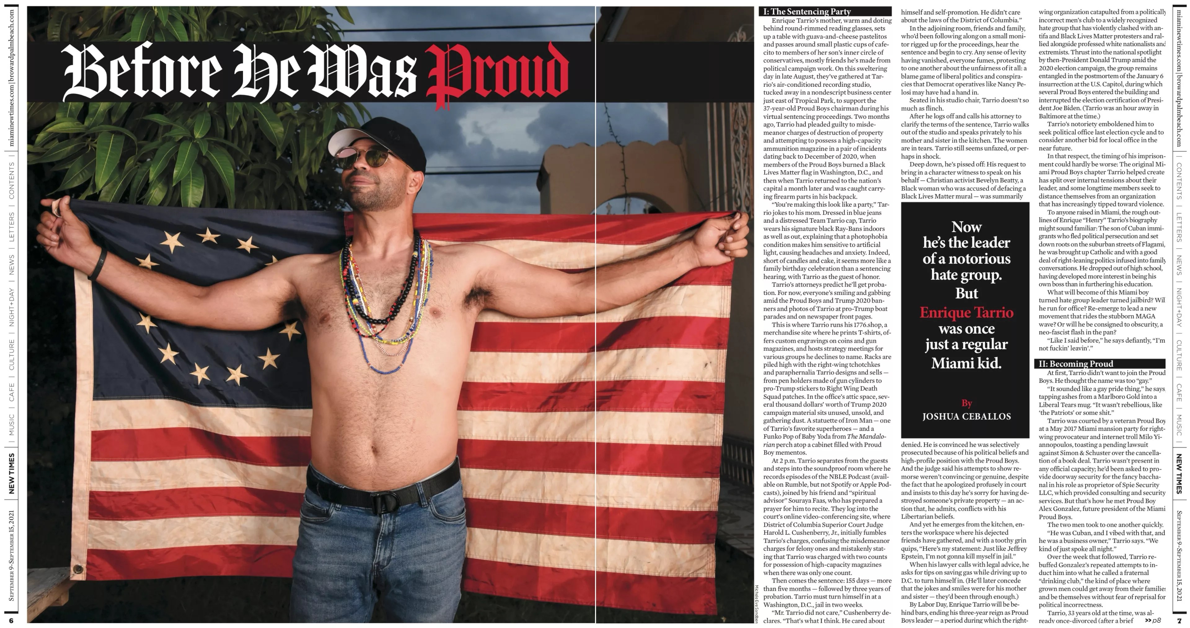 In a sit-down interview with New Times, Tarrio discussed his return to Miami, his time in prison, and what he sees as the Proud Boys’ place in America moving forward. He also talked about plans to possibly run for U.S. Congress, and the political aspirations of other Proud Boys.