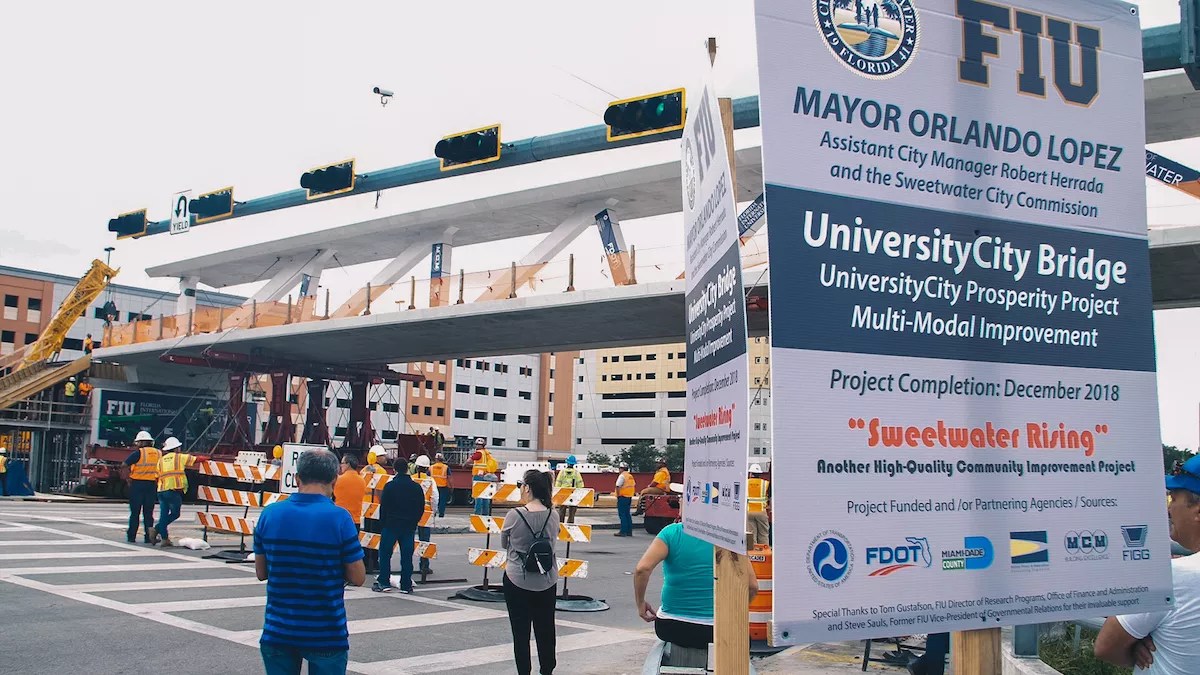 Munilla Construction Management, a South Florida firm, beat out three other finalists to win the bid to build FIU’s bridge, which was part of a $14.2 million project funded by the U.S. Department of Transportation. The firm partnered with Figg Bridge Group, which is headquartered in Tallahassee and has worked on iconic projects such as the Sunshine Skyway Bridge in Tampa.