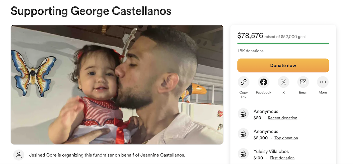 According to the fundraiser for the Castellanos family, the money raised will be used to celebrate his life and allow his family to bid their “final farewells,” as well as provide support for his daughter and her mother.
