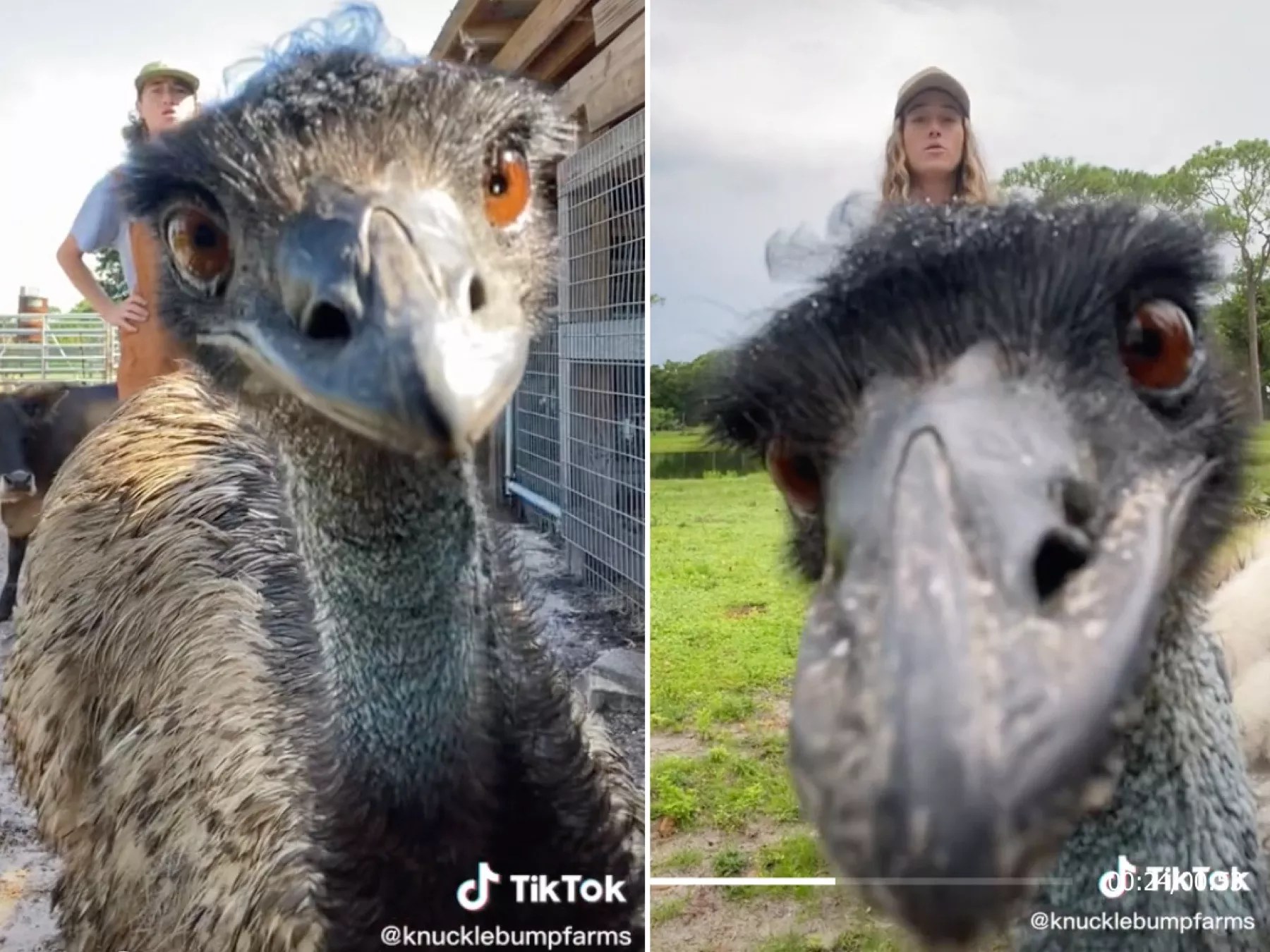 Though the farm’s residents include another emu named Ellen, a docile deer, and a handful of adorable miniature cattle, it’s Emmanuel who has become the inadvertent star of the Knuckle Bump Farms TikTok.