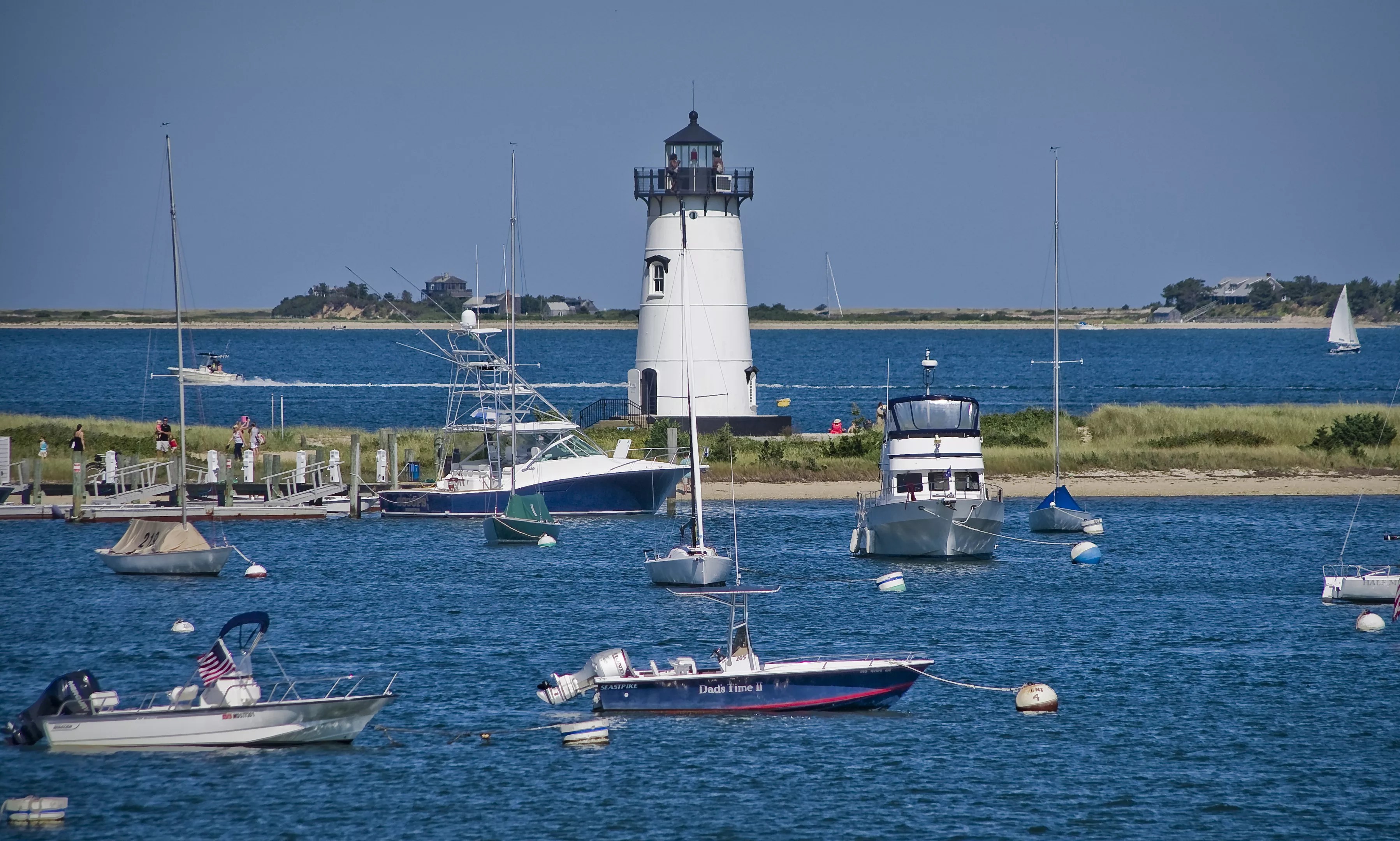 A lighthouse in Edgartown, a community where dozens of migrants were given shelter in September 2022 after Florida Gov. Ron DeSantis sent them on a flight to be dropped off in Martha’s Vineyard.