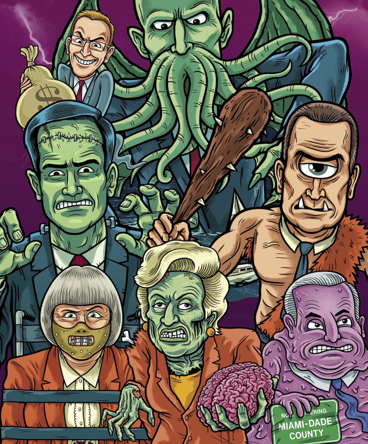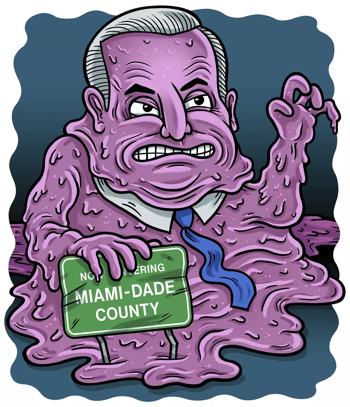 Seven years ago, he emerged from the depths of the county commission looking like just another milquetoast, moderate Republican. But Carlos Gimenez had a dark secret: Beneath the bureaucratic suits was a hideous freak of nature – an insatiable, ever-growing blob fueled by cash poured directly down its gullet by developers and construction magnates. Residents could only watch in horror as Blobmenez, pulsating with greed, expanded with terrifying speed, slapping down asphalt on an ever-widening suburban sprawl and leaving new highways in his wake where previously endangered birds and precious Everglades waterways had existed for centuries. Can anything stop this abomination? Not as long as campaign money continues streaming into his glistening, horrid mouth. Illustration by Alvaro Diaz-Rubio