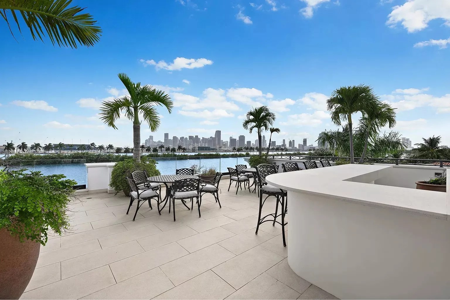 According to the listing, the three-story home features a 5,000-square-foot rooftop “with unique 360-degree visibility” and a private dock. Dina Goldentayer of Douglas Elliman was the listing agent.