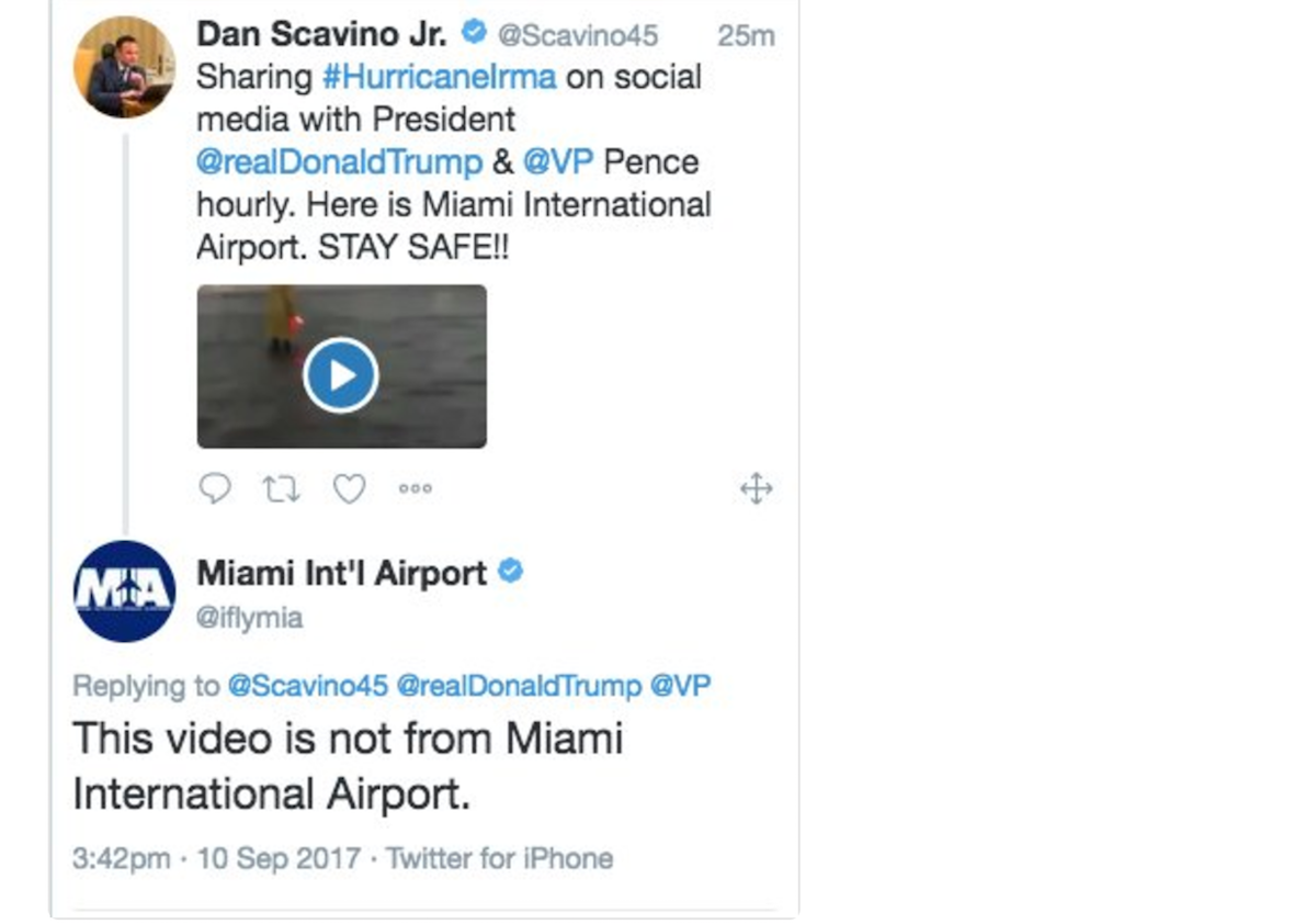 4:15 p.m. Dan Scavino, President Donald Trump’s director of social media, fell for a fake-ass video of flooding at Miami International Airport – and MIA called him out for it on Twitter.