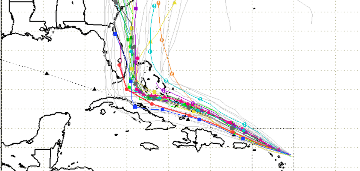 If there’s any good news, it’s that the trend suggests Irma’s eye wall could stay just off the coast. Here’s one round of the latest spaghetti models.