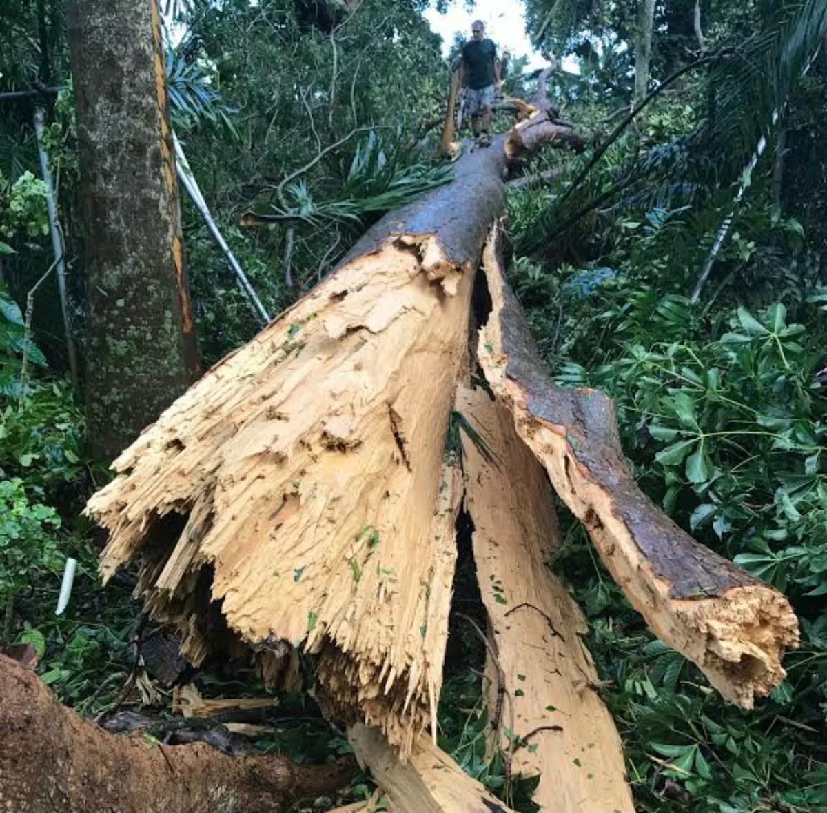 “With this hurricane, there were many mini-tornadoes,” says Stan Wood, Flamingo Gardens’ executive director. “One hit the tree and twisted its trunk while the tree was still under the stress of the wind.”