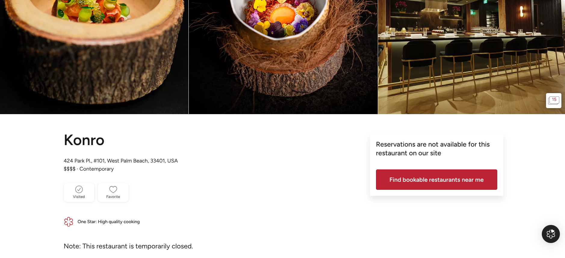 Bickelhaupt faces charges of attempted second-degree murder, false imprisonment, tampering with a witness, victim, or informant, and violating a domestic violence injunction. He has pleaded not guilty to all charges. Konro, a fine-dining restaurant in West Palm Beach, earned a Michelin star earlier this year. Screenshot via Michelin Guide