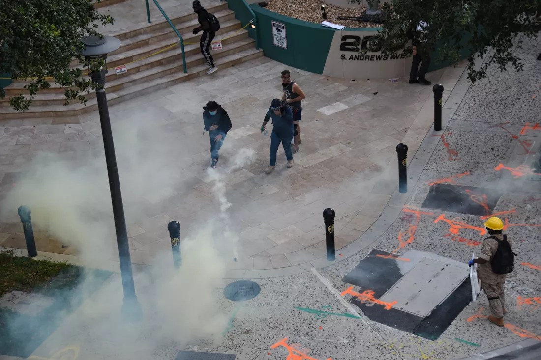 Store windows a few blocks away on Las Olas Boulevard were shattered that day, following a riot in Miami the previous night that saw police vehicles set ablaze. Fort Lauderdale Mayor Dean Trantalis said that he believed a small group of agitators had come to the downtown area of his municipality in order to confront police and cause trouble.