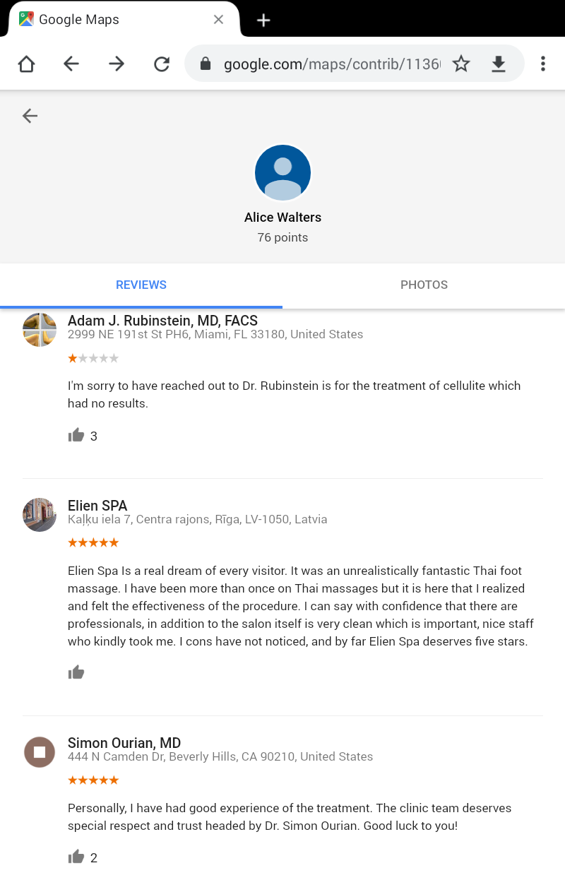 Rubinstein says he got two or three bad reviews a day from people whose names he didn’t recognize. Although he suspected Ourian, he couldn’t confirm it until he got a Facebook message from someone who claimed he’d been hired by a service in Russia to write fake reviews about the two surgeons.