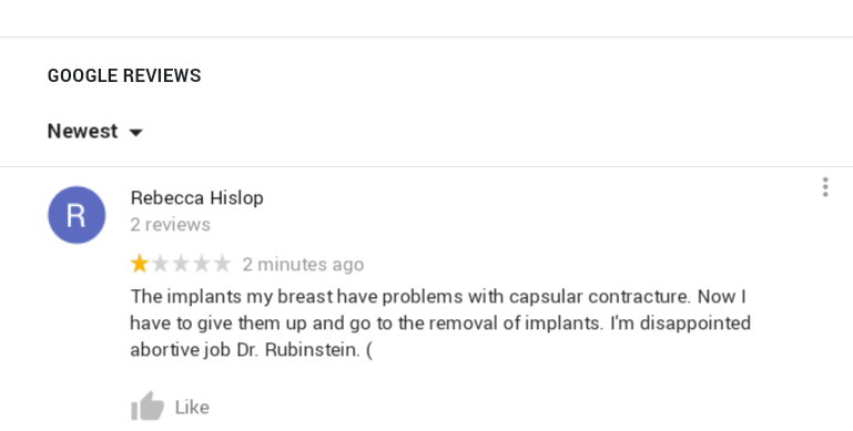 In the ensuing months, Rubinstein says, accumulated scores of one-star reviews on Google and other sites claiming he’d botched surgeries.