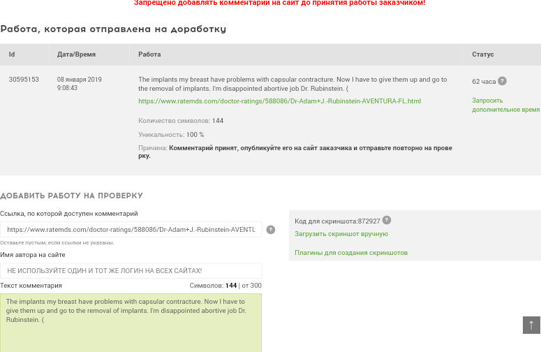 In one example, the alleged work order from the Russian site has a box with a 300-character limit, and a translated paragraph that says, “I’m disappointed abortive job Dr. Rubinstein. (.”