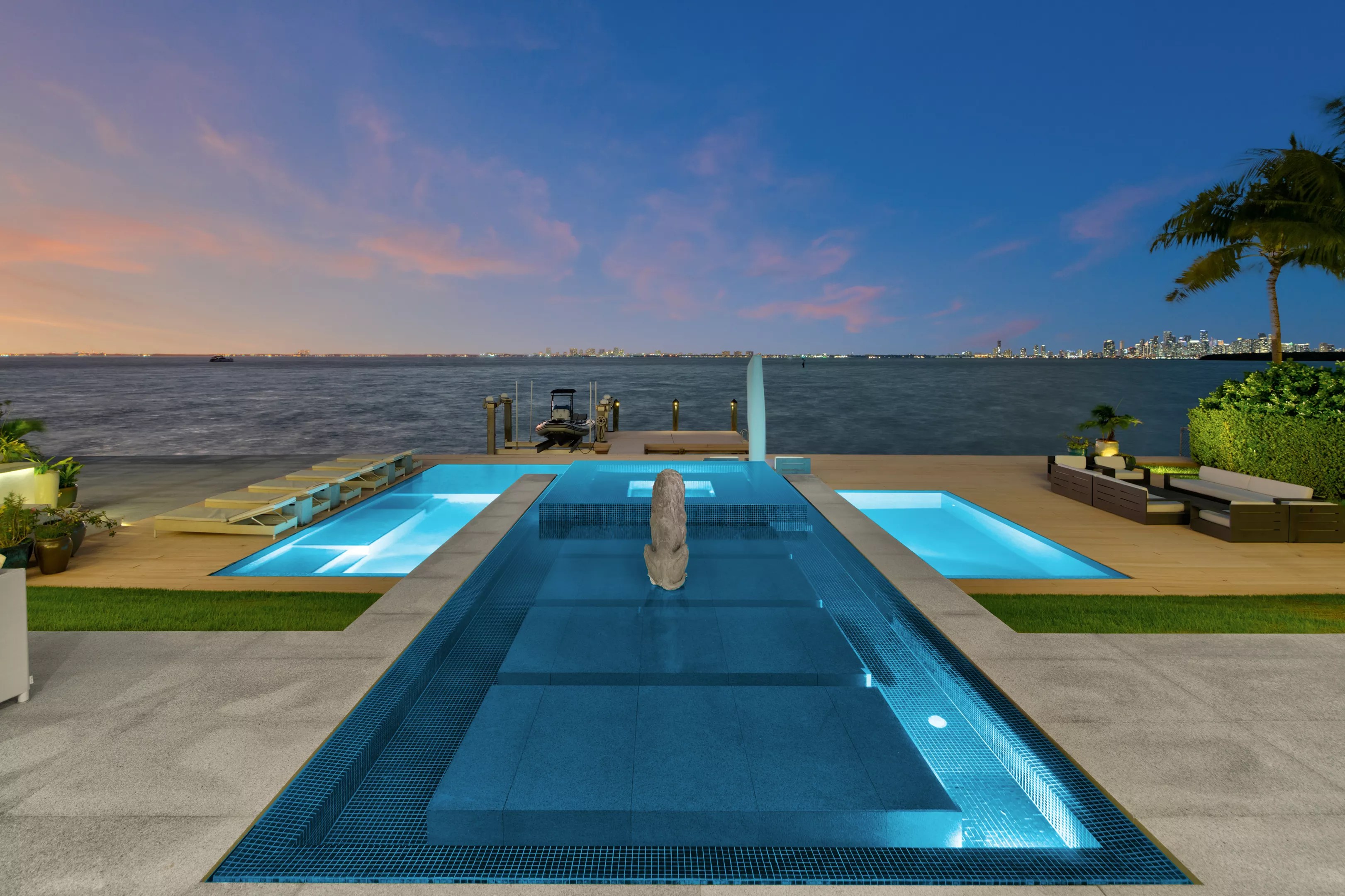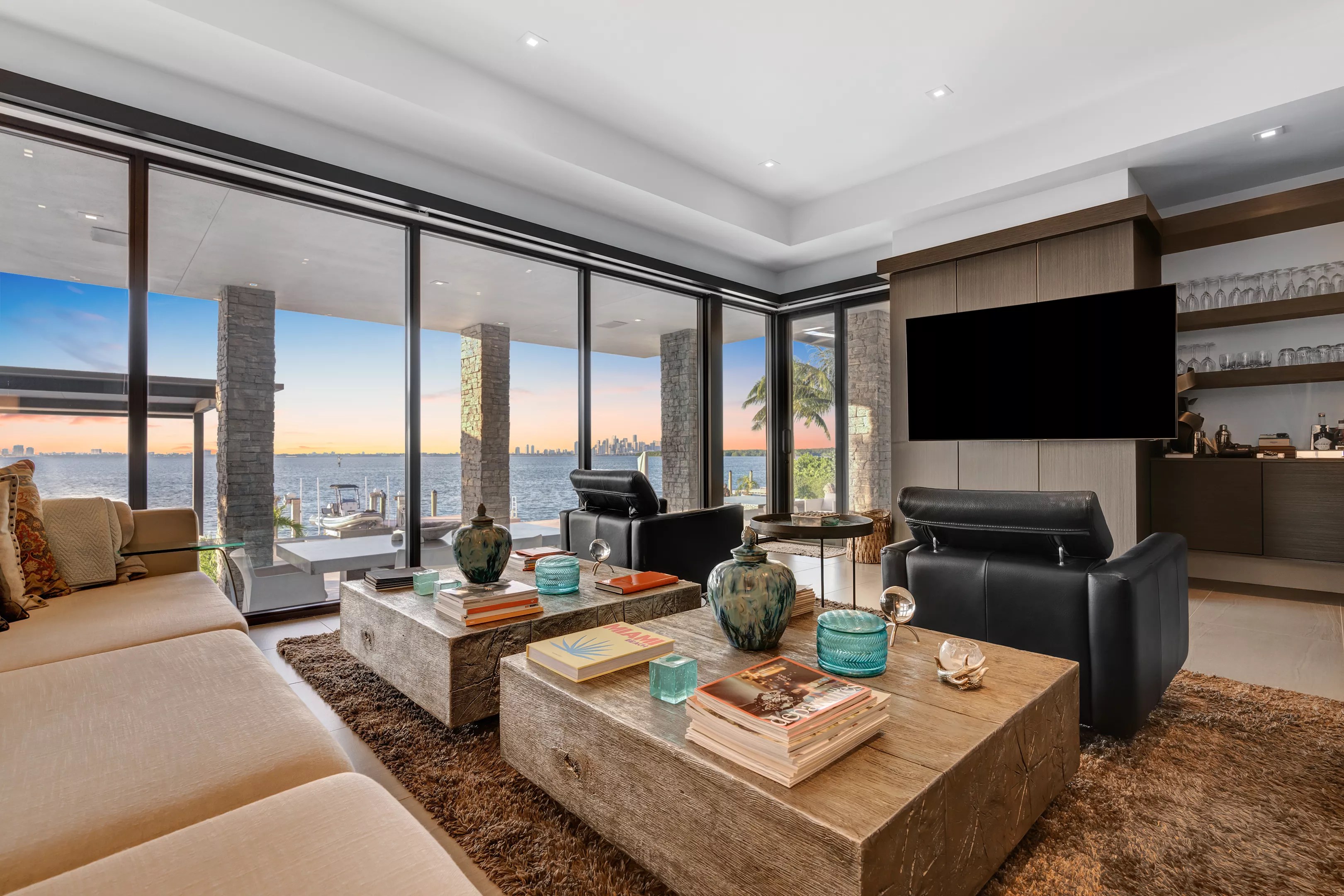 The six-bedroom and seven-and-a-half-bathroom waterfront estate at 330 Harbor Dr. on Biscayne Bay could be yours for $37.5 million. Designed by architect Ramon Alonso, the home spans more than 7,000 square feet with 120 feet of water frontage in Key Biscayne and views of the downtown Miami skyline.