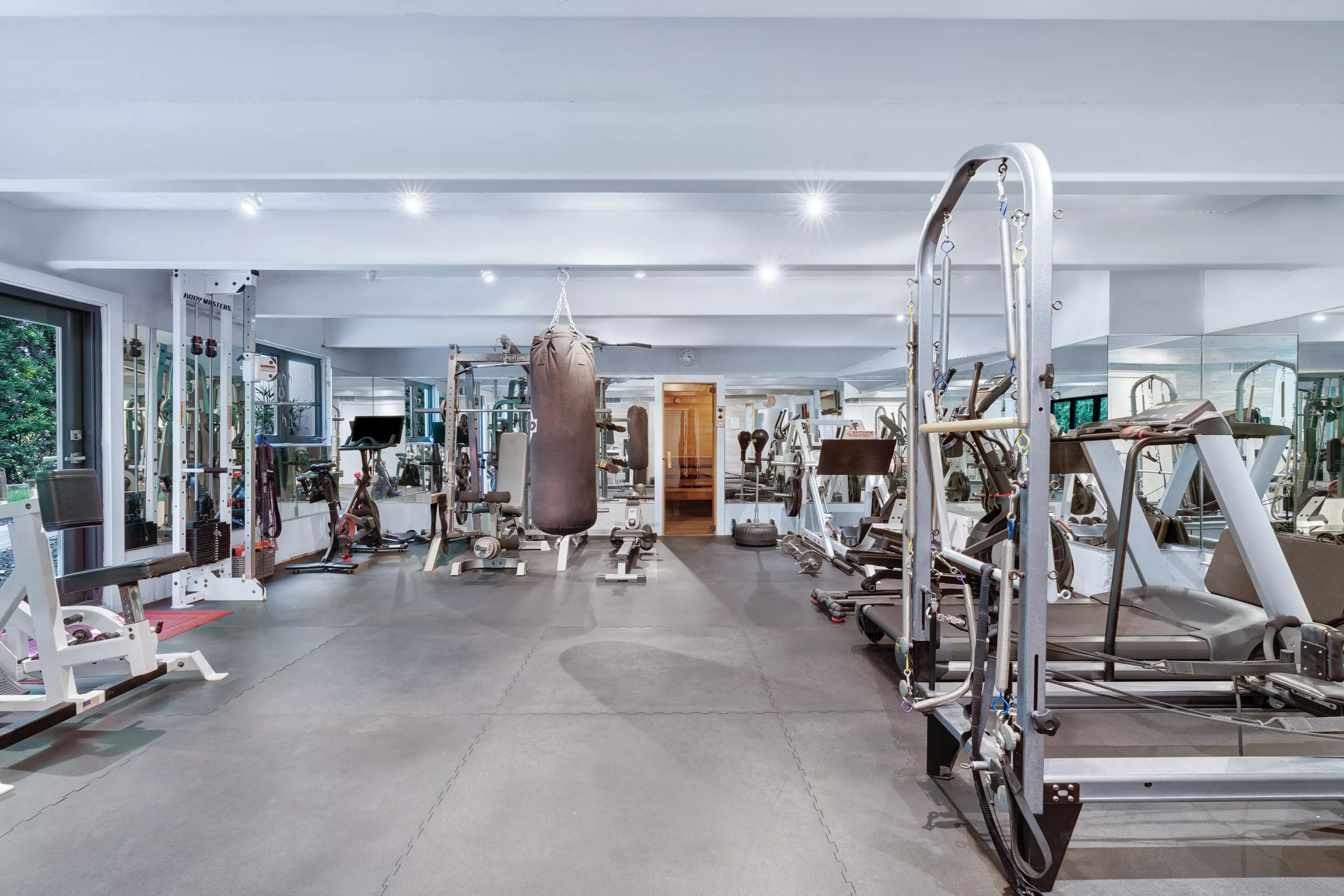 The home, which the listing says is designed for “large-scale indoor and outdoor entertaining,” touts resort-style features like massive balconies, high ceilings, spacious bedrooms, and ocean views from every room. The mansion also has a dedicated entertainment level with a full gym, spa, sauna, and movie theater.