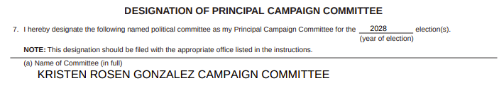 So on May 6 – 22 days after the FEC sent its letter – Rosen Gonzalez found a new reason to keep her campaign account running: She quietly filed to run for Congress once again. But bafflingly, she filed to run in 2028. There are four congressional elections – 2020, 2022, 2024, and 2026 – in the nine years between then and now. It’s virtually unheard of for a congressional candidate to file for a House race that far in advance, and the filing raises questions about what Rosen Gonzalez plans to do with the money left in her previous campaign account – $17,237.17 in cash as of April – while she waits nearly a decade for her next federal election season.
