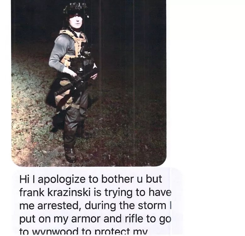 “Hi I apologize to bother you but [local resident Frank Kruszewski] is trying to have me arrested,” Agazim wrote. “During the