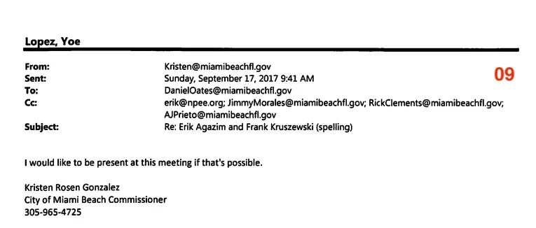 Miami Beach Commissioner Kristen Rosen Gonzalez, who is running for U.S. Congress, sent the Miami Beach Police chief a flurry emails demanding a major donor to her campaign not be arrested for an alleged spree of machete destruction, according to text messages and emails New Times obtained this week.