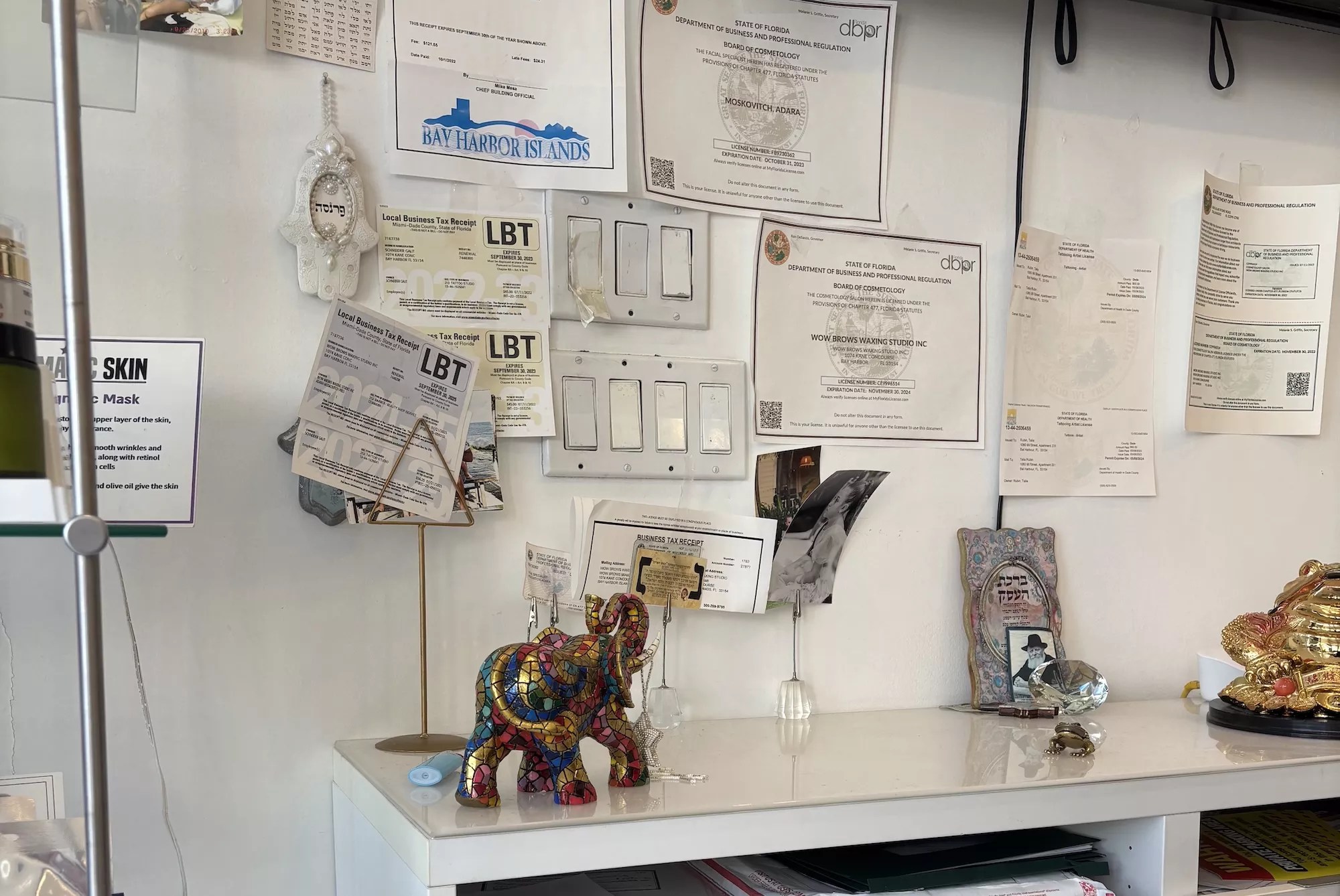In a TikTok video posted on August 26, user @changedbygrief described walking into her eyebrow appointment at Wow Brows, a beauty salon in Bay Harbor Islands, when she noticed a black visored cap with white lettering sitting atop a counter near the front of the shop. One clip she shared shows the hat visible from the street through the salon’s front window.