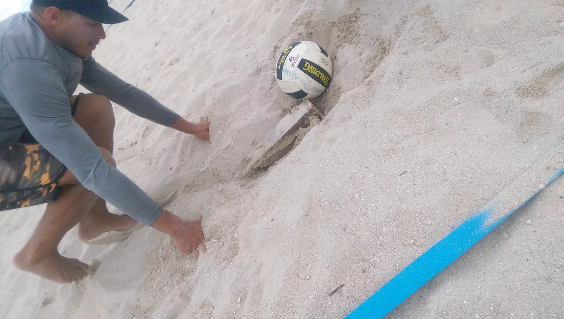 A volleyball player stumbled upon a cinder block from a past event.