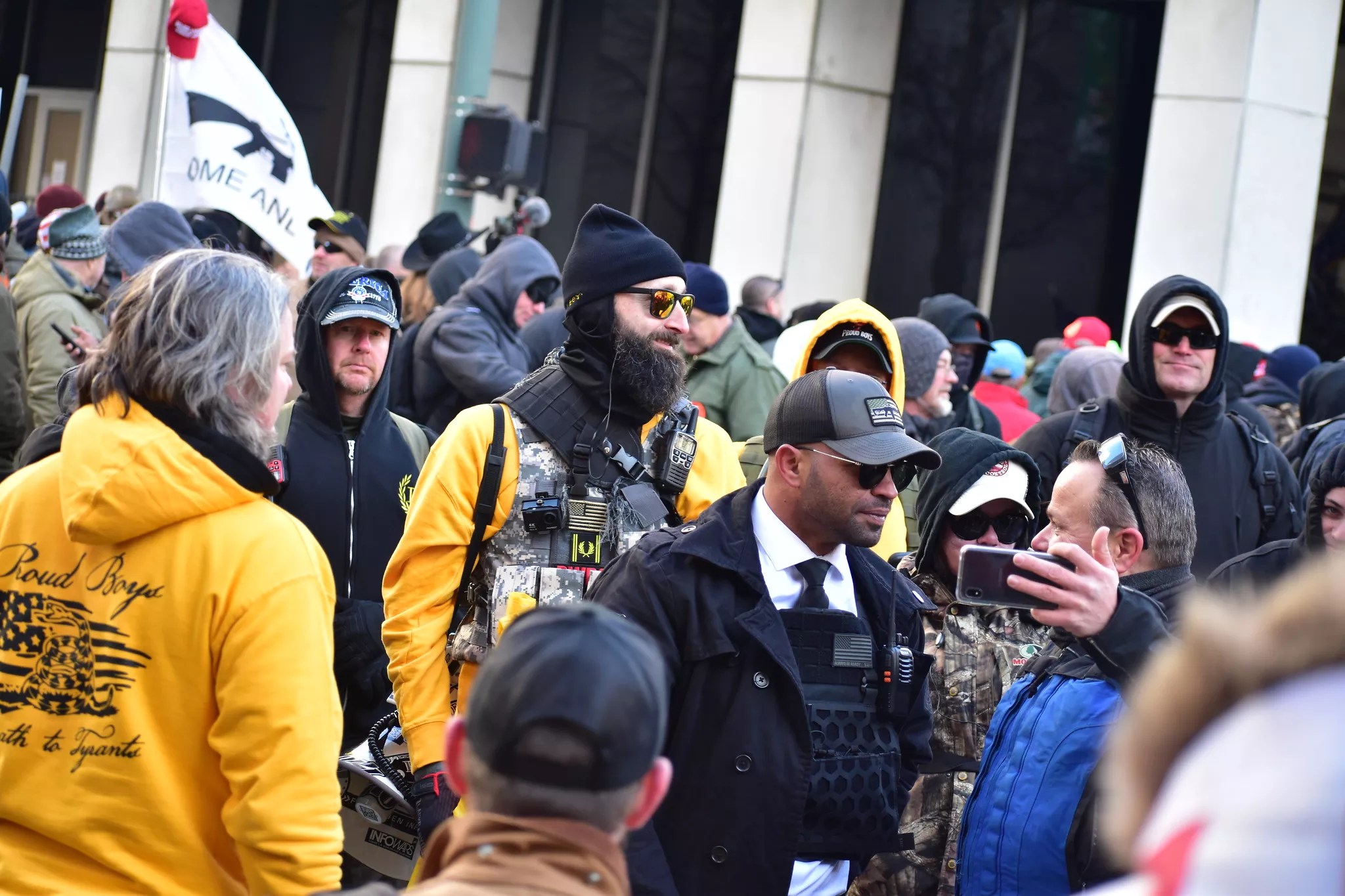 Enrique Tarrio and the Proud Boys at a Virginia rally in January 2020.