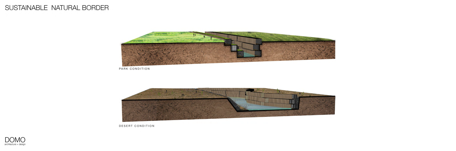 Instead of building a wall into the sky, Domo proposes digging what is basically a trench across the