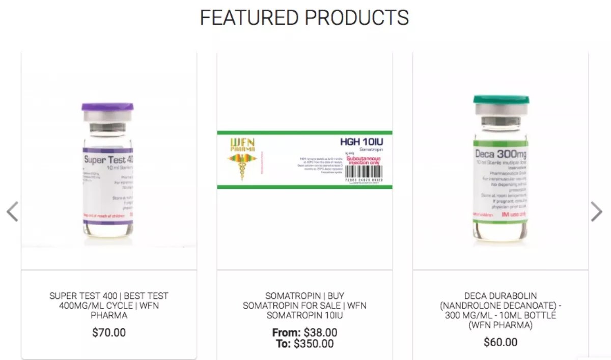 The site, which is still online, advertises federally controlled steroids such as Deca Durabolin for sale: