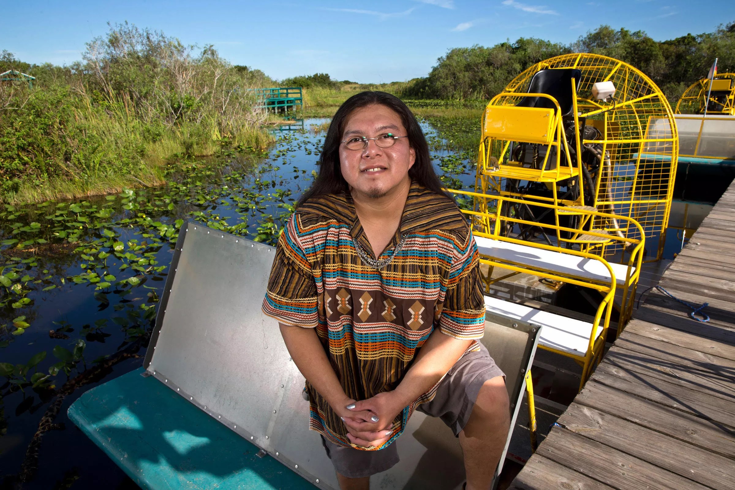 Miccosukee Tribe member Houston Cypress is a two-spirit artist and environmentalist who cofounded the nonprofit Love the Everglades Movement. He serves on the board of Unity Coalition.